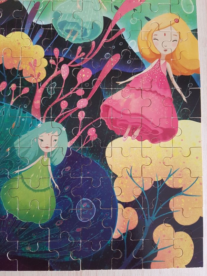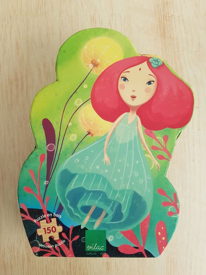 Puzzle de 150 pièces en bois de Vilac sur le thème des fonds fantastiques peuplés d'êtres imaginaires .