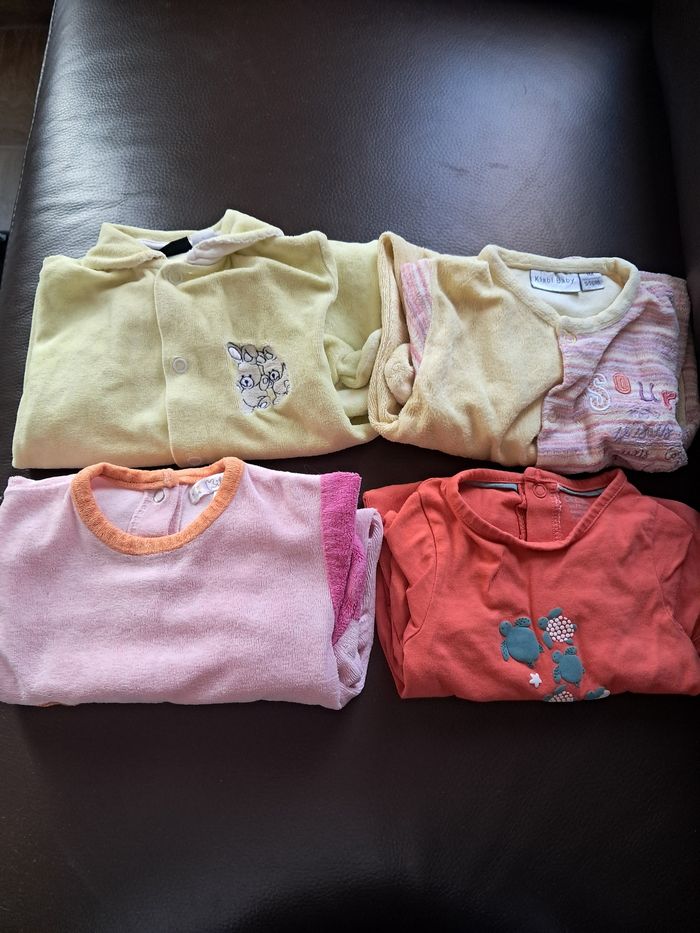 Lot de 4 pyjamas 1 mois 3 velours et 1 normal 2 kiabi 1 kitchoun 1 obaïbi