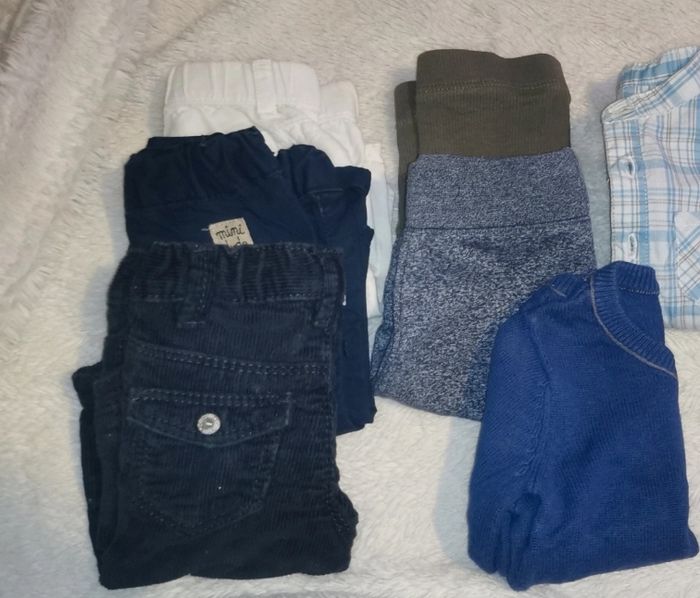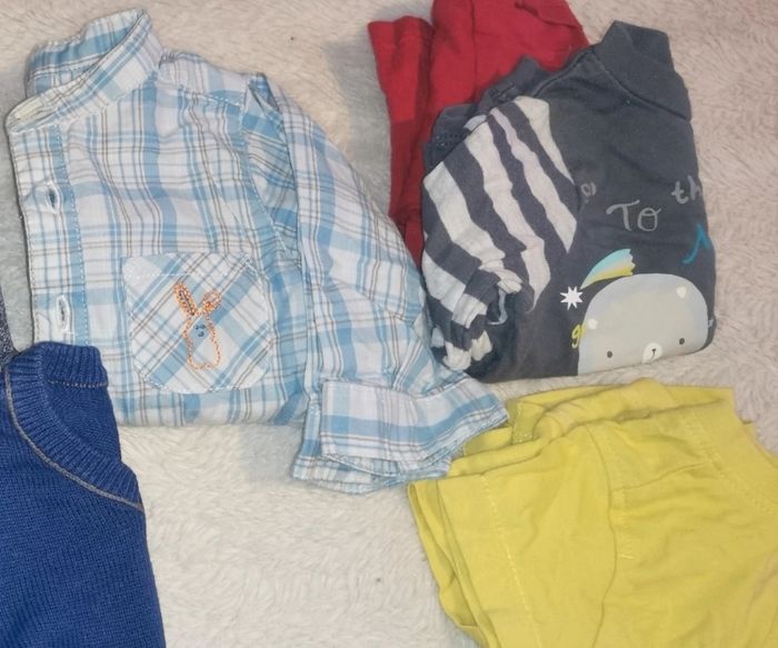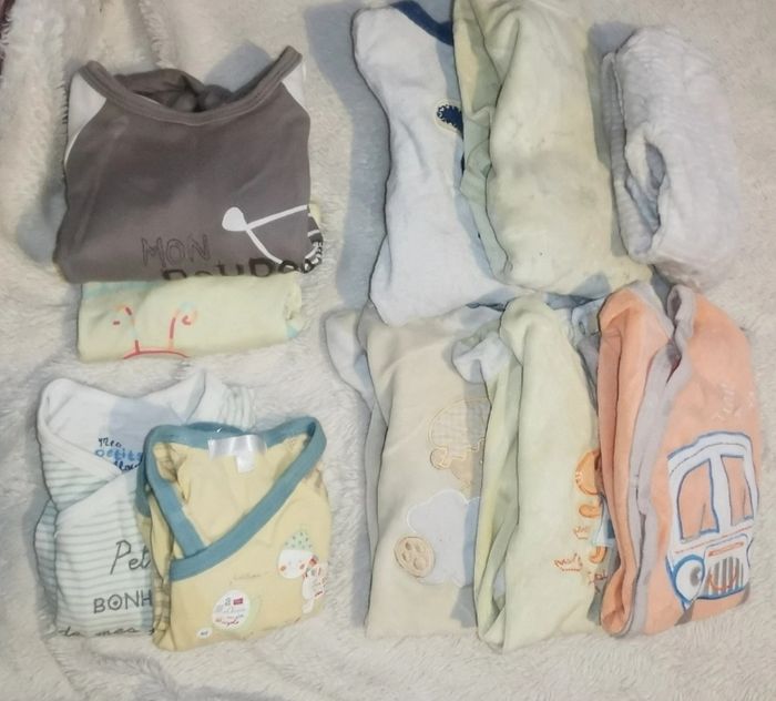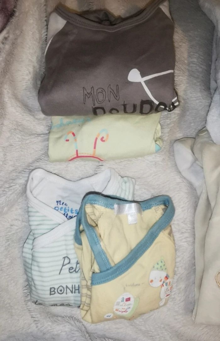 POSSIBILITÉ DE FAIRE DES LOTS AVEC REDUC EN + DANS LA LIMITE DU RAISONNABLE 😁 ( 30 pièces ) naissance à 1 mois = 0€50 pièces Vêtements naissance ( haut gauche) en très bon état ! ( 7 pièces) 3 bodys, 3 pyjamas été et un pantalon élastique fin. Lots de Pyjamas hiver 1 mois ( haut droit) ( 10 pièces) en très bon état hiver 6, été 2 et 2 bodys Lots de vêtements 1 mois ( en bas) ( 12 pièces) , en très bon état, 5 pantalons, 1 pull, 1 chemise, 2 t-shirts manches longues et 1 manche courte + 2 gilets