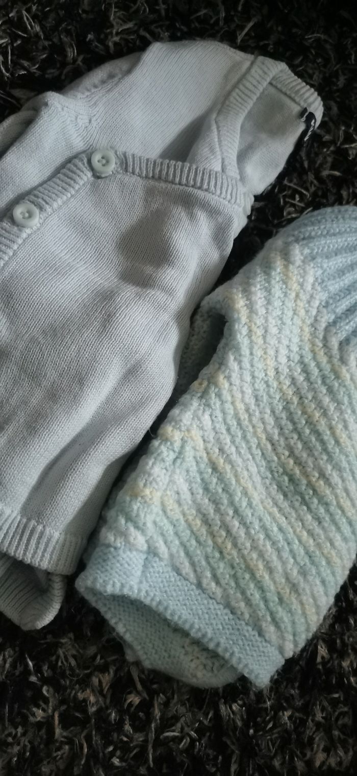 Lots de vêtements ( 10 pièces) 1 mois, en très bon état, 5 pantalons, 1 pull, 1 chemise, 2 t-shirts manches longues, 1 manche courte et 2 gilets