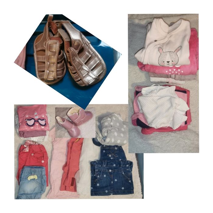 Maison non fumeur ( 24 pièces soit 0,50 centimes pièce ) Lots de Pyjamas en très bon état 3 mois, ( 12 pièces) 4 pyjamas hiver, 6 bodys manches longues ( un bodie manque juste une lettre mais reste en bon état 2 autres ont les lettres effacés sur les 5 je n'ai que lundi, mardi jeudi vendredi et dimanche ) , 2 gilets fins Lots de vêtements en excellent état 3 mois ( 12 pièces) 4 t-shirts manche longue dont un col roulé, 1 pantalon, 1 short, 5 robes, 1 paire de boots fourrés neuves et une paire de claquette