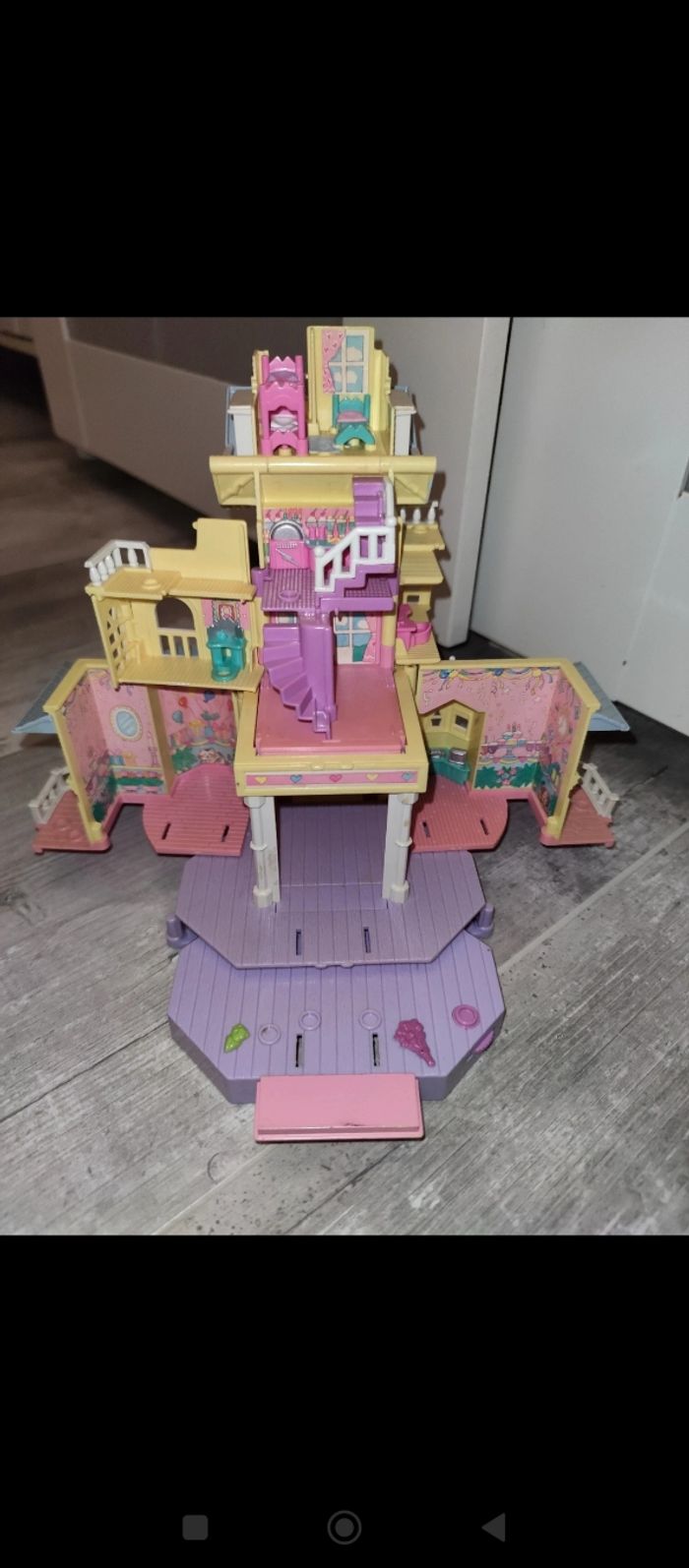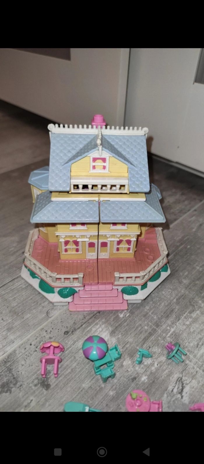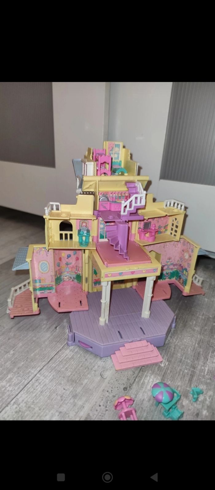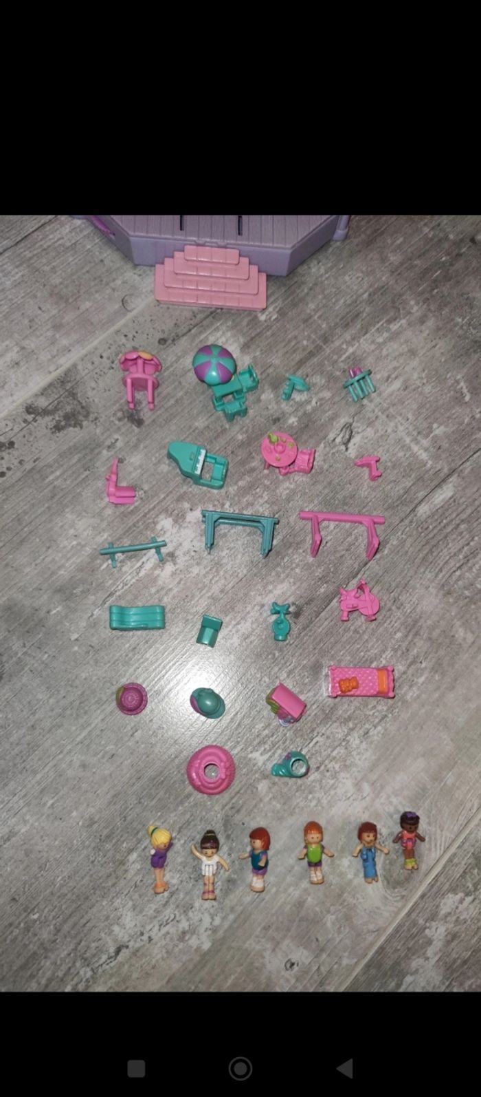 Polly pocket 1995 grande maison club house Avec l'ensemble des accesoires et les 6 personnages ( dont 1 personnage danseuse manque les bras )