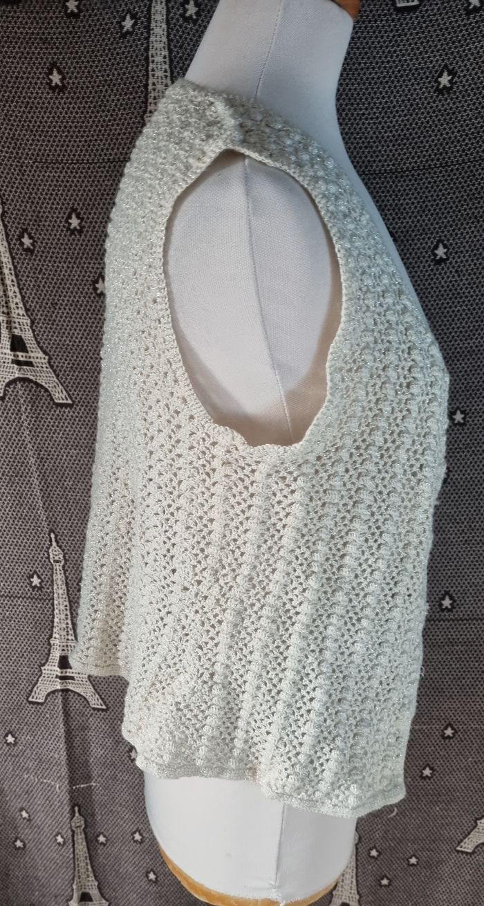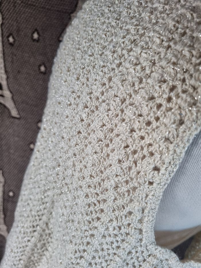 Cardigan crème à reflet pailleté argenté taille M - photo numéro 5