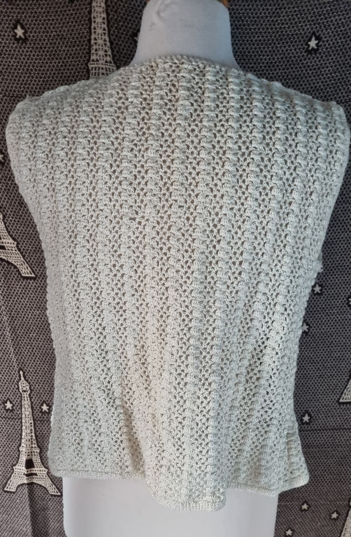 Cardigan crème à reflet pailleté argenté taille M - photo numéro 6