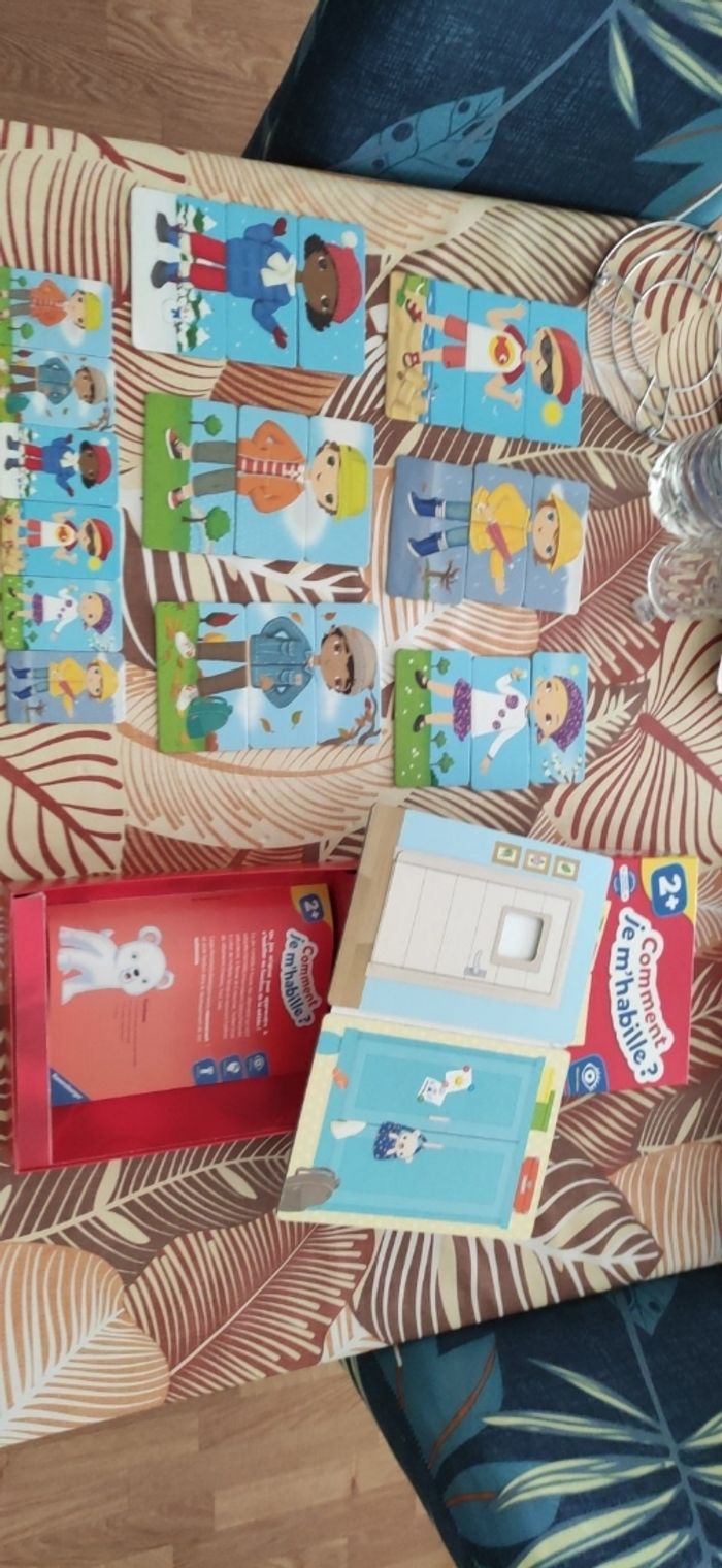 Jeu éducatif "Comment je m'habille" de la marque Autre. - Type de produit : Jeu éducatif - Tranche d'âge : Dès 2 ans - Fonctionnalités : Permet d'apprendre à s'habiller, avec des images et des textures Très bon état Complet
