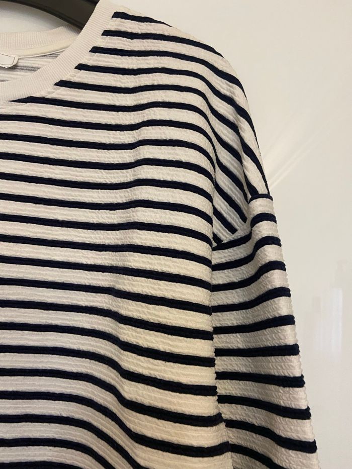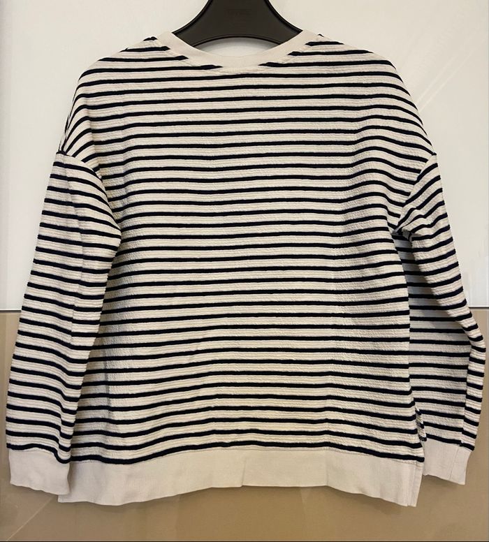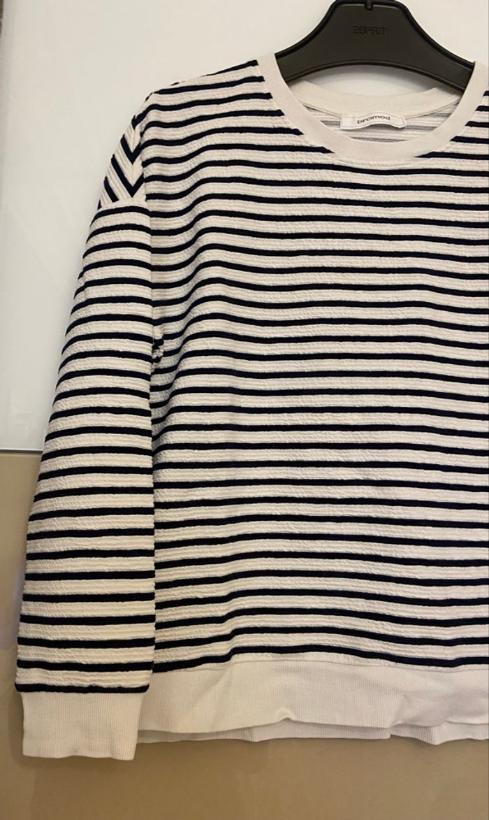 sweat marinière oversize de la marque Promod. Taille : S/M Couleur :Multicolore marine et crème Style : Oversize Longueur 60 cm