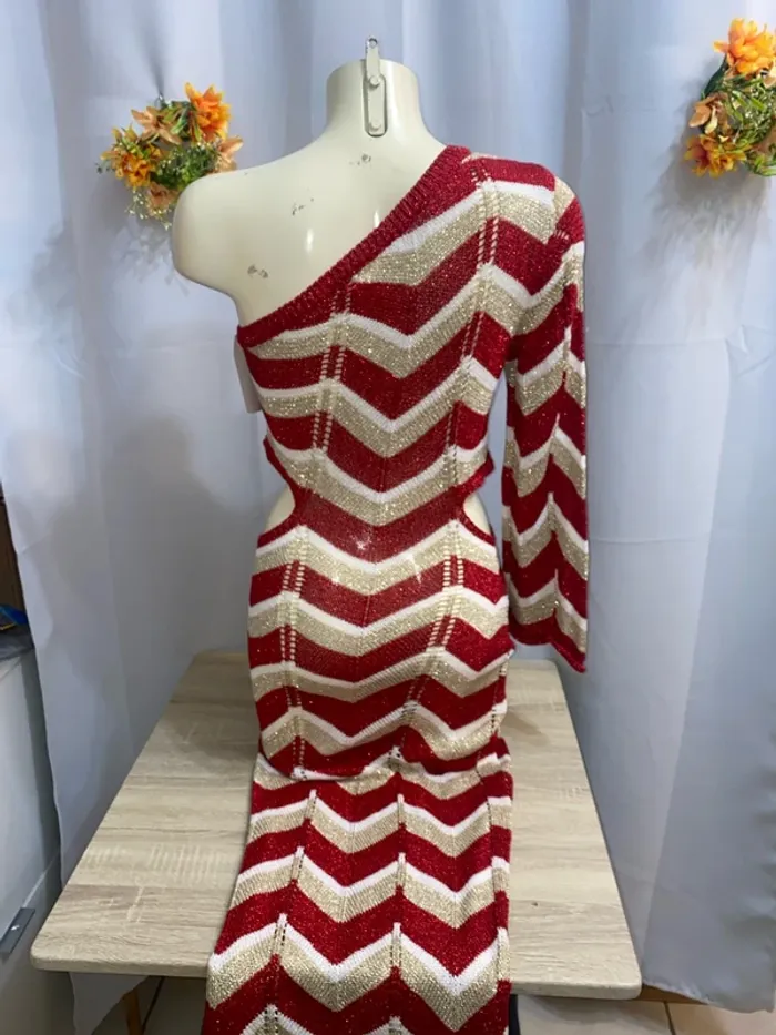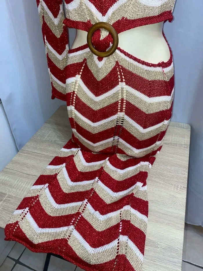 Robe de soirée moulante elastane rouge/or/beige New Collection taille M = 38 neuve - n38p