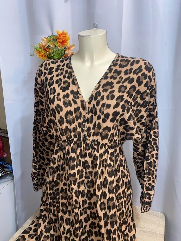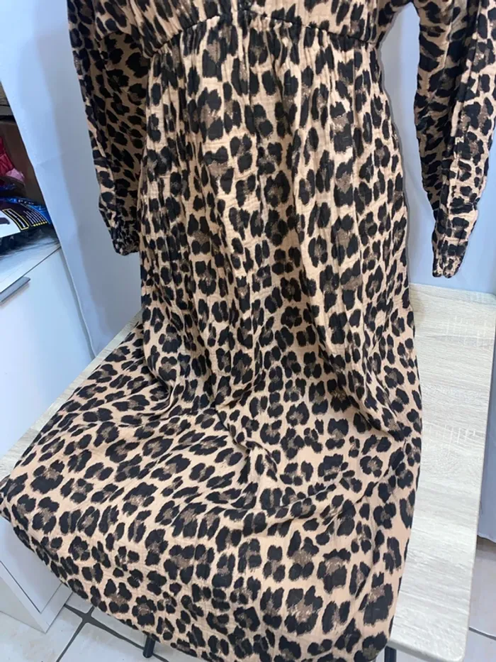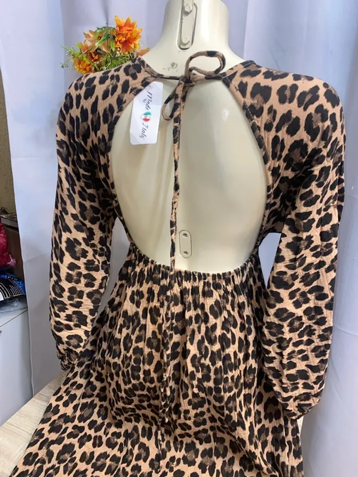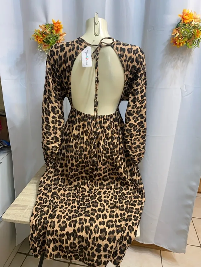 Robe longue dos nu crêpée coton tachetée marron et noire taille M = 38 neuve - n40p