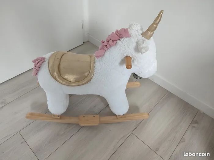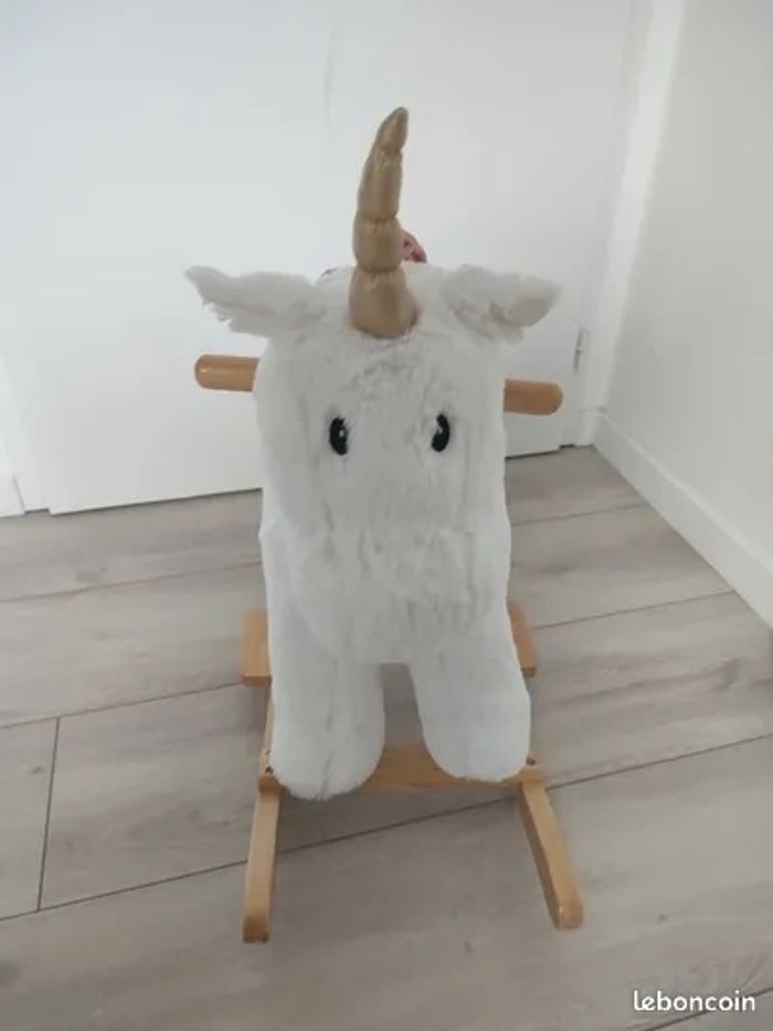 Licorne a bascule très bon état, sans trou ni tache Manque un "boulon, en dessous cf photo) Acheté 60€ Sera envoyé démonté, colis bien emballé