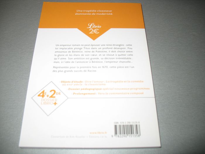 #Livres_Nathg2210 LIVRE : RACINE "LIBRIO" - NEUF - n°48 Livre de poche : Racine - Éditions : Librio - Auteur : Bérénice - ISBN : 978-2-290-15135-8. Article neuf sans étiquette - Couverture désinfectée pour la vente. Possibilité d'envoyer d'autres photos sur simple demande. Maison non-fumeur - Sans animaux. Réduction lot activée. Allez voir mes autres ventes, je vide les placards. Beaucoup de vêtements de marque et beaucoup de jouets. Remise en mains propres ou possibilité d'envoi au tarif en vigueur à votre charge. Retour Refusé. Pour tout renseignement, n'hésitez pas à me contacter, je répondrai volontiers à vos questions. Réponse Assurée. Pour Consulter mes autres annonces tapez Nathg2210.