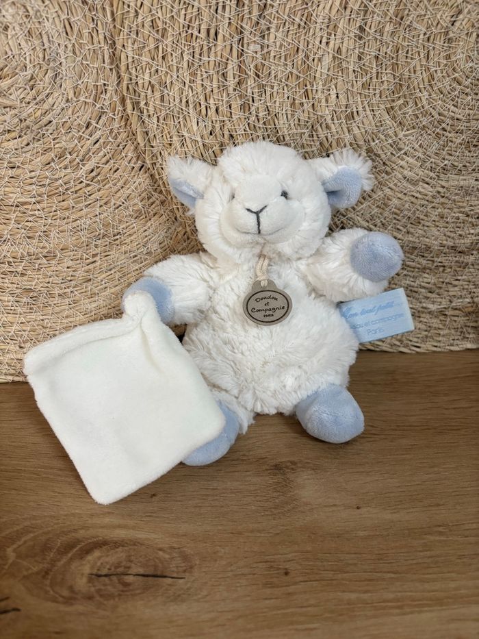 Doudou mouton mouchoir blanc bleu mon tout petit doudou et compagnie - photo numéro 1