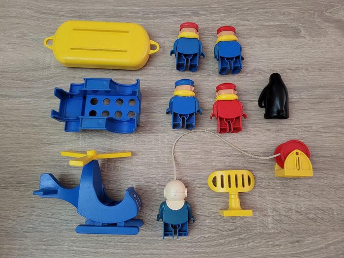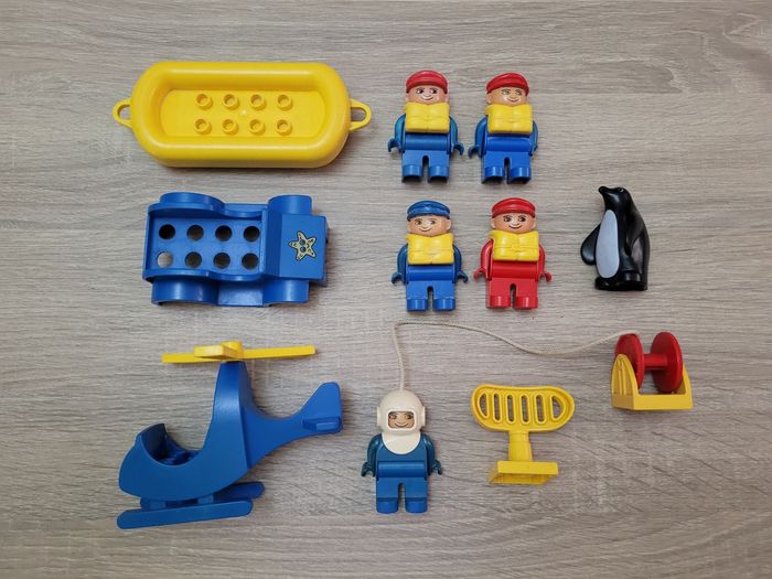Vend lot Duplo en bon état juste des signes d'usures liés au jeu (voir photos). Lot comprenant un bateau, 5 personnages, 1 pingouin, 1 antenne, 1 enrouleur pour le plongeur, 1 hélicoptère et une voiture mais pas complète (voir photos). Vendu tel que sur la publication.