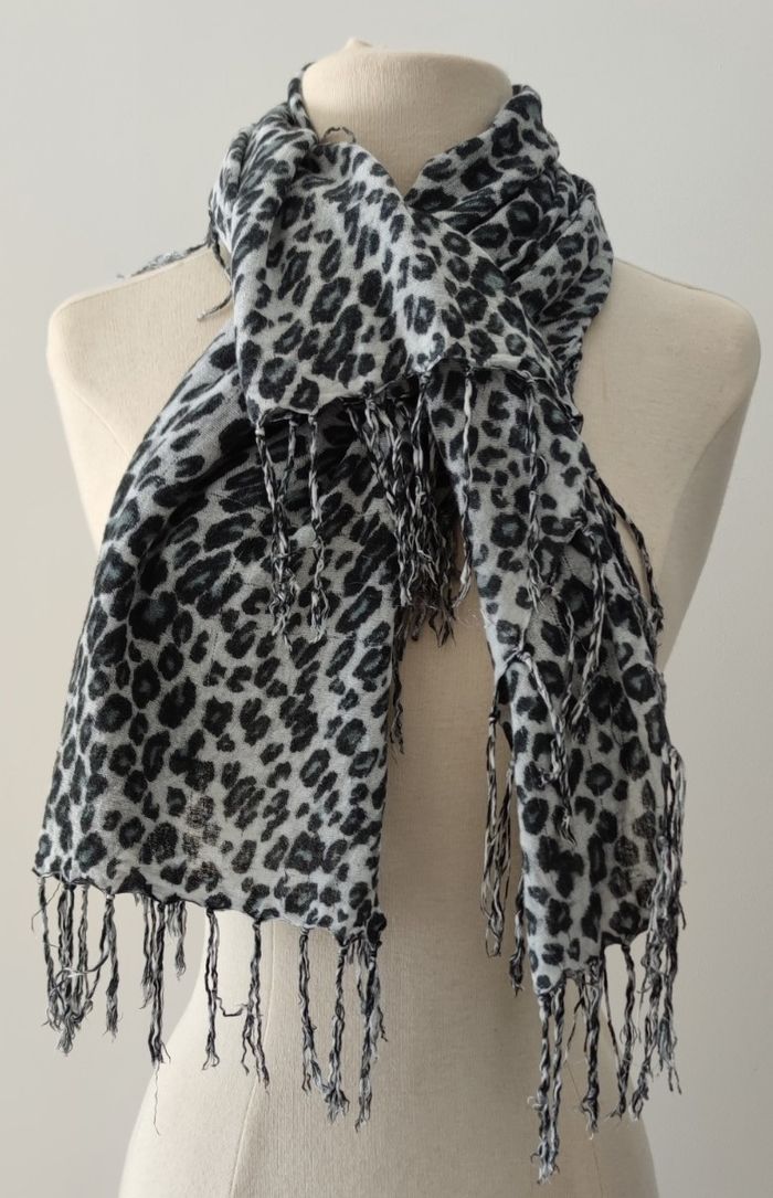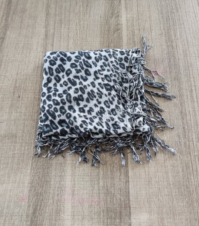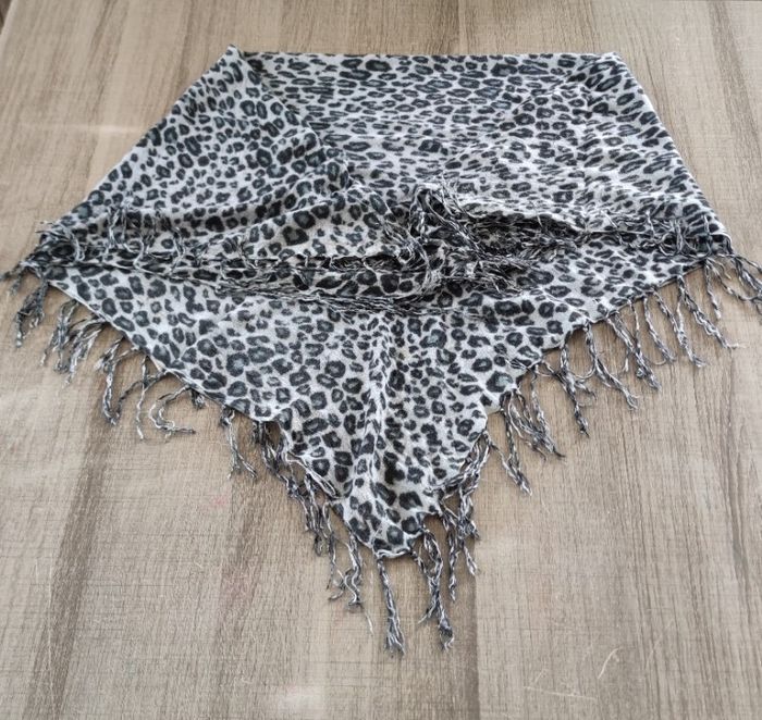 Foulard de couleur gris léopard pour femme Foulard de longueur 89 cm et de largeur 80 cm Article en bon état, expédition rapide Prix 2€