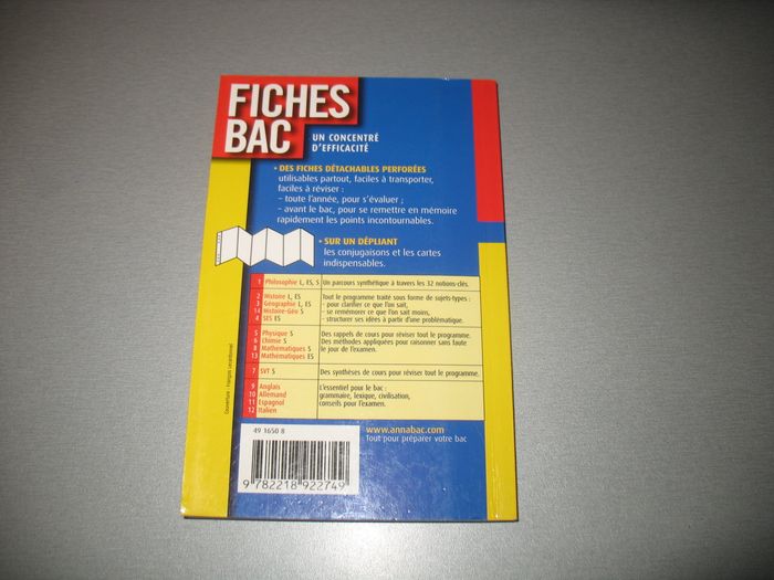 #Livres_Nathg2210 LIVRE : FICHES BAC ALLEMAND "HATIER" - n°61 Livre en un concentré d’efficacité - Tout le programme en 44 fiches détachables et en couleur - Un dépliant pour les conjugaisons et les cartes - Terminale toutes séries - ISBN : 2-218-92274-6. Article en très bon état - Couverture désinfectée pour la vente. Possibilité d'envoyer d'autres photos sur simple demande. Maison non-fumeur - Sans animaux. Réduction lot activée. Allez voir mes autres ventes, je vide les placards. Beaucoup de vêtements de marque et beaucoup de jouets. Remise en mains propres ou possibilité d'envoi au tarif en vigueur à votre charge. Retour Refusé. Pour tout renseignement, n'hésitez pas à me contacter, je répondrai volontiers à vos questions. Réponse Assurée. Pour Consulter mes autres annonces tapez Nathg2210.