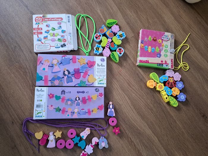 Le lot Ils sont complet sauf celui de princesse il manque 1 perle Les perles peuvent comporter quelques petites trace d'usure