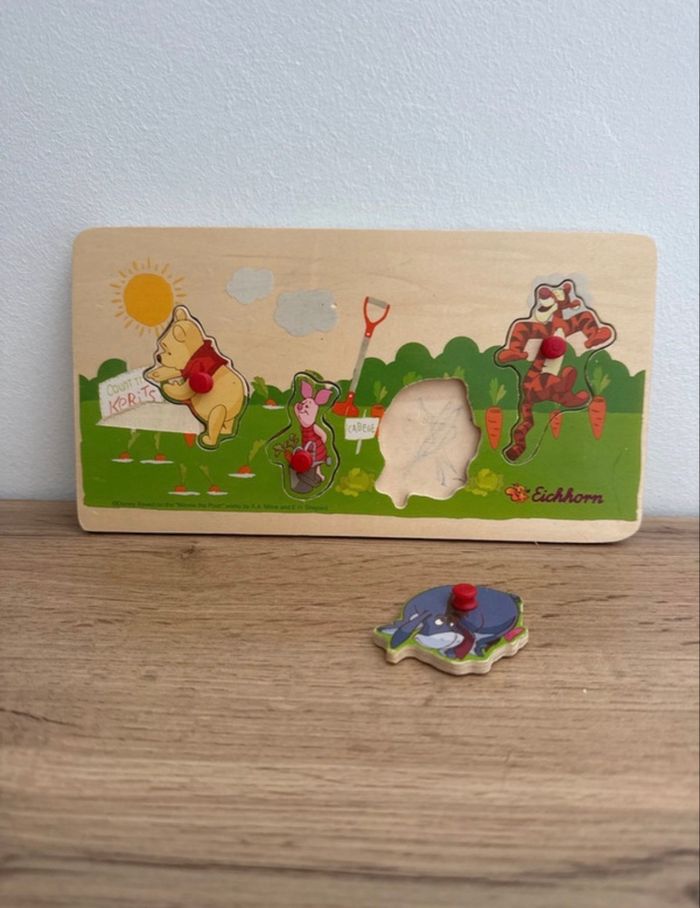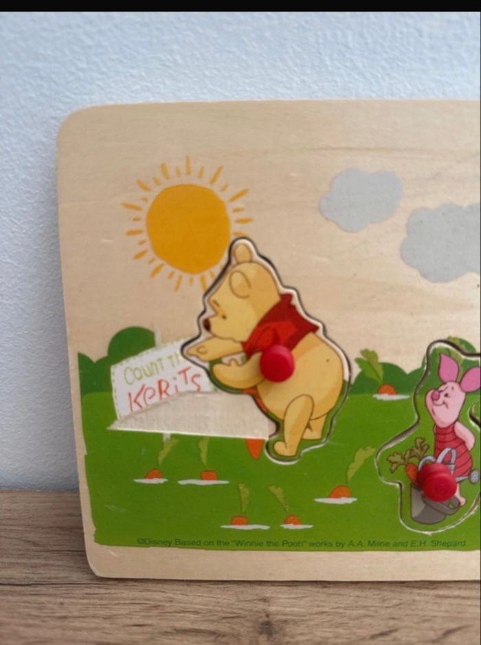 Puzzle en bois Winnie l’ourson Complet Traces de crayons sous les pièces.. voir photo Et petit bout de bois manquant ne gêne en rien le puzzle