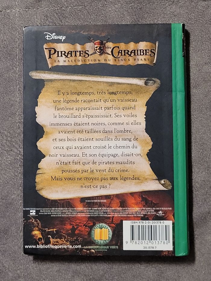 Bonjour, Je vends ce livre nommé - Pirates Des Caraïbes Tome 1 - La Malédiction Du Black Pearl Pascal Loubet (Traduction) - en très bon état. Si vous rechercher un livre ou un acteur en particulier et pour gagner du temps, n'hésitez pas à me le demander, je vous répondrais dès que possible 😇 Veuillez vous abonner pour recevoir toutes les nouveautés Pour autres infos n'hésitez pas à me contacter. ***** Merci de votre visite *****