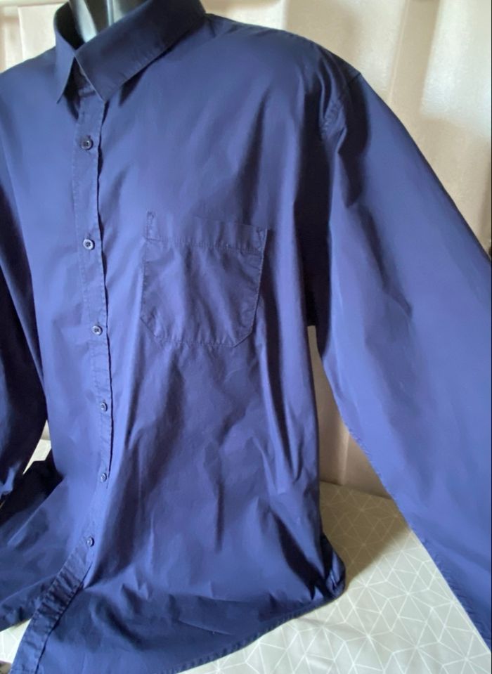 Chemise coton bleu marine 49/50 La redoute 100% coton Bon état car la couleur est très légèrement blanchi suite aux lavages Carrure 57,5 cm Aisselle à aisselle 79,5 cm Longueur 88 cm