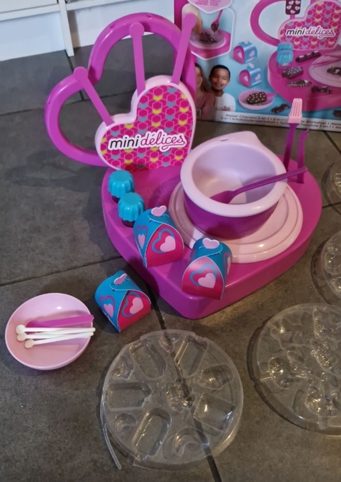 Atelier chocolat mini délices Très bonne état général accessoires complet Défaut la boîte et le côté d'un moule Réduction sur les lots activé 😊
