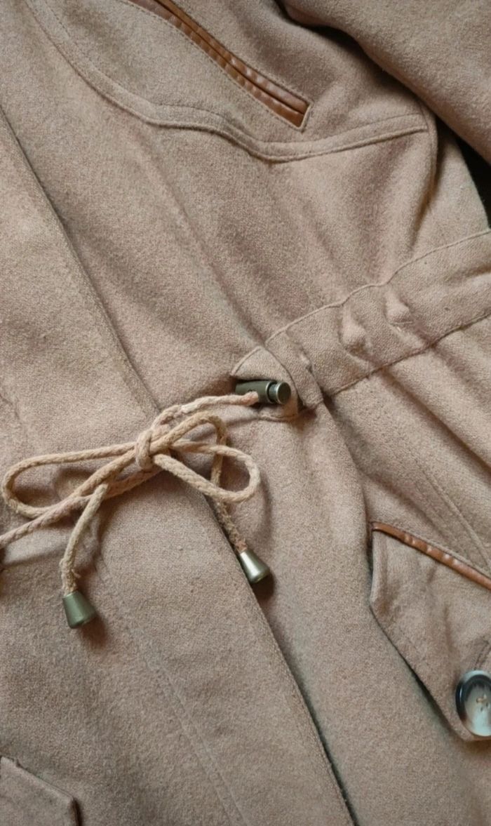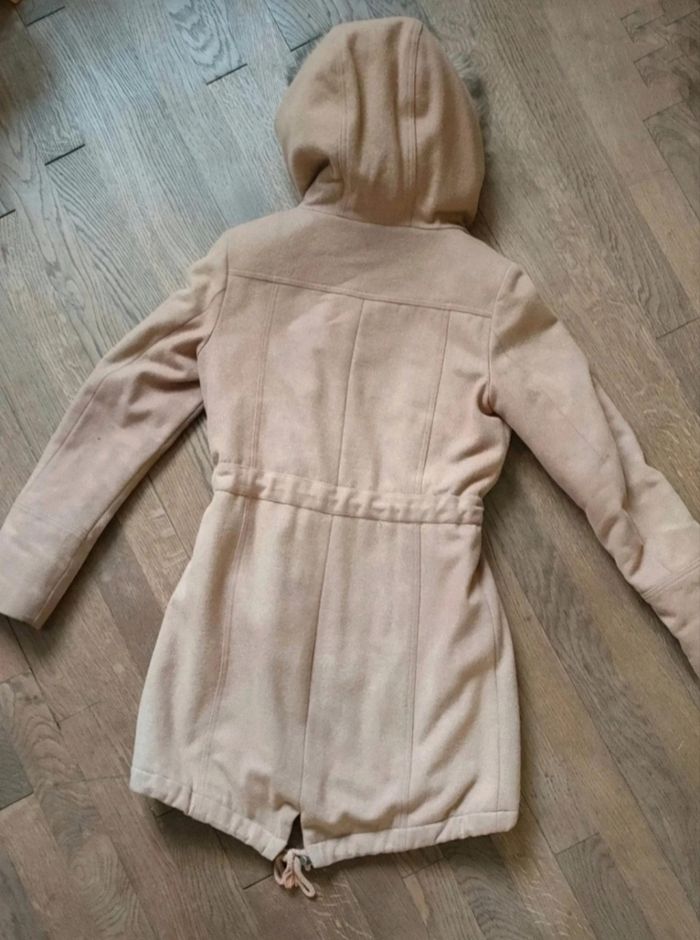 Manteau marron style parka en bon état, juste un peu abîmé au niveau des poches (voir photos).