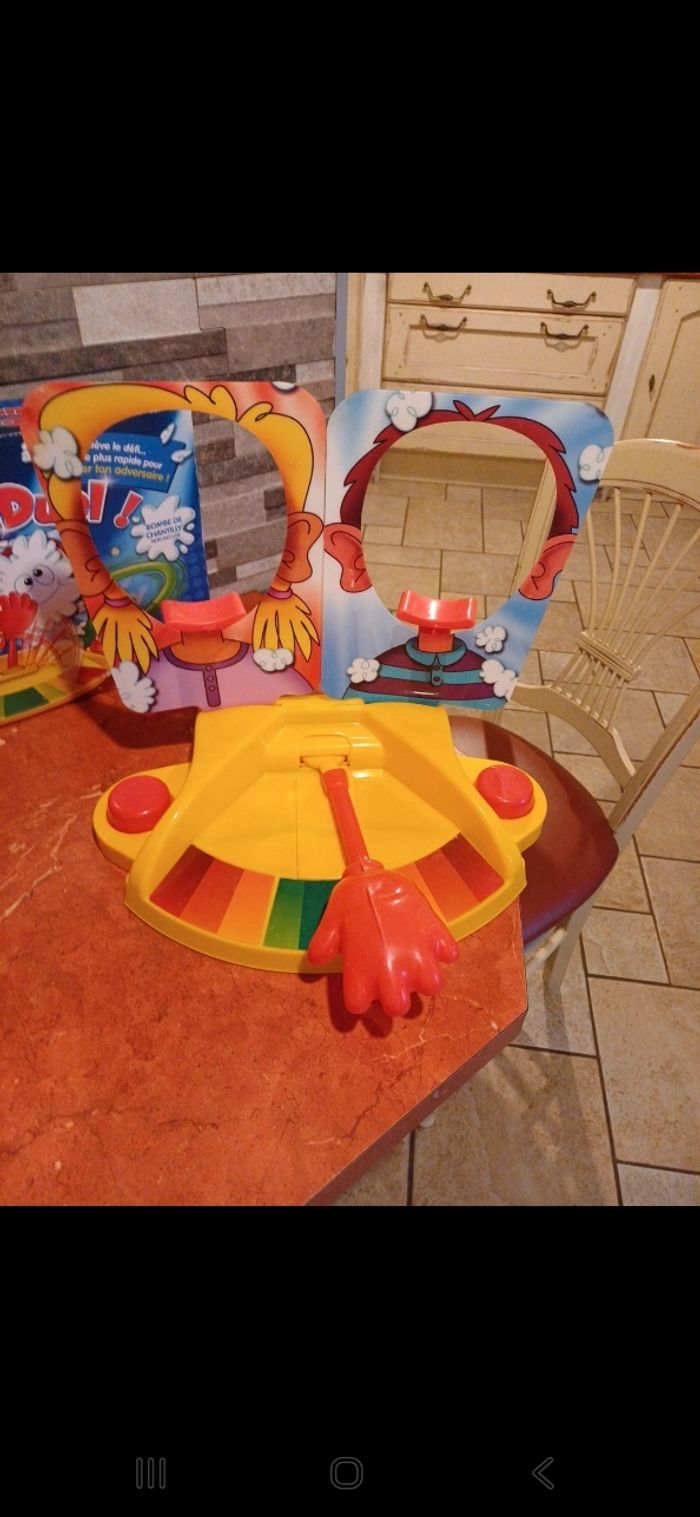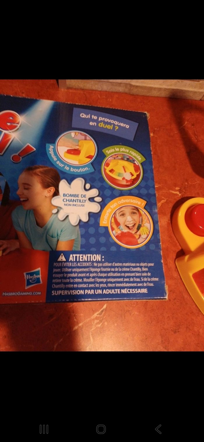 Se joue à 2. Il s agit de mettre sa tête dans le cadre et de presser le bouton plus rapidement que son adversaire. Le plus lent perd. A partir de 5 ans. Manque l éponge. La boîte montre quelques marques d usures.