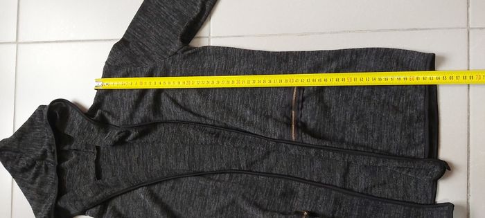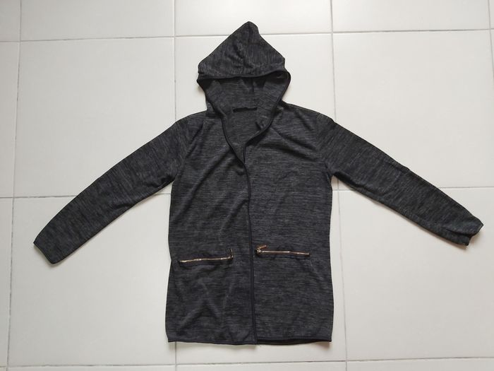 . Gilet à capuche Pas de fermeture 2 zip en déco Renfort au coude Couleur noir gris Taille unique #carinedditailleuniquefemme #carineddiLfemme