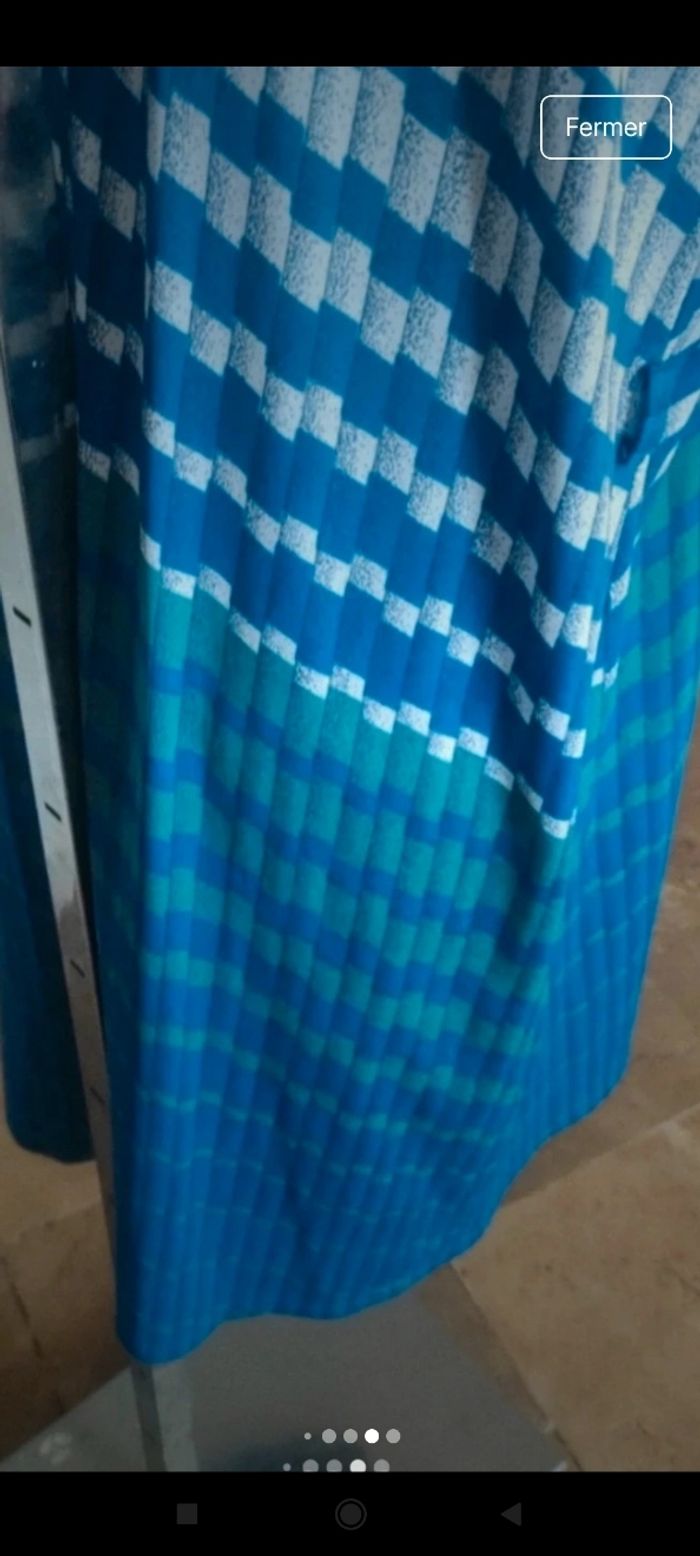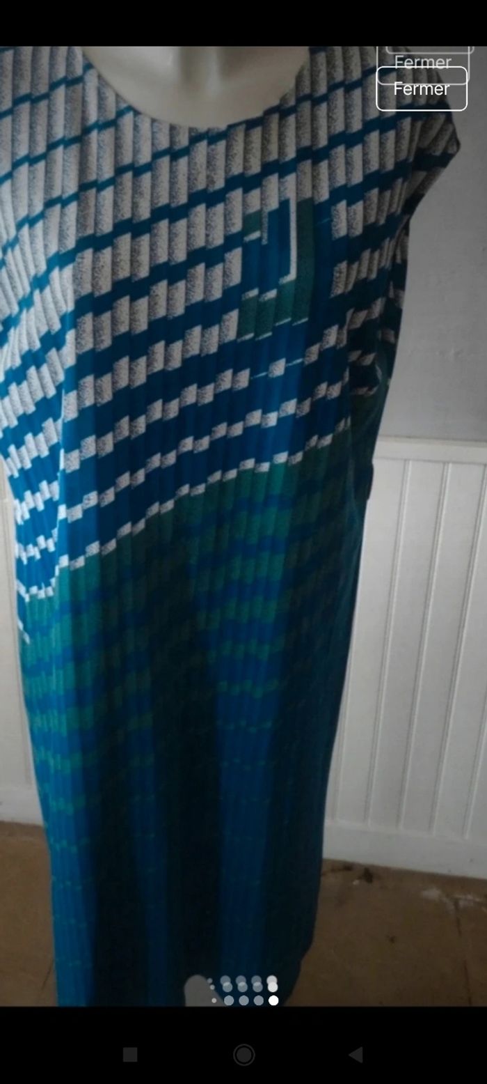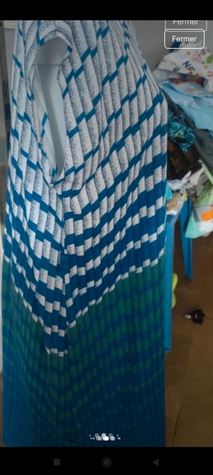 Très belle robe femme Très peu servi Légère et agréable Toute petite trace pas très voyant Taille 48/50 Largeur aisselles a aisselles 59 cm Longueur 105cm F3