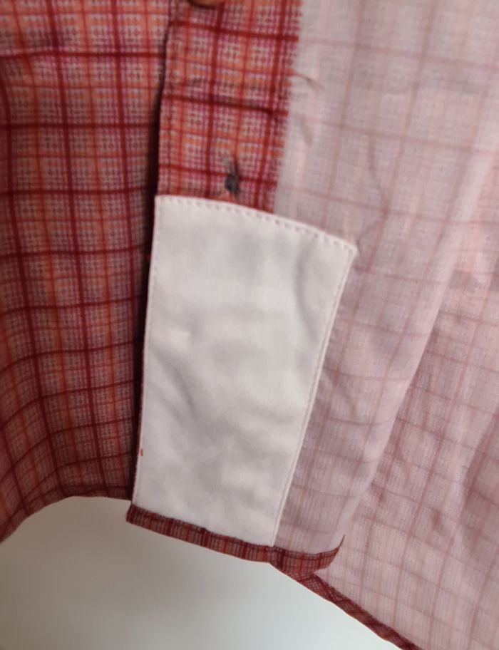 Chemise manche longue Acapulco carreaux rouge, orange et beige. Travel Séries de Cimalp, marque française éco-responsable Tissu fluide, respirant, léger à porter, sèche rapidement sans odeurs, même après plusieurs utilisations sans lavage. Anti moustique et anti UV (UPF 40) Deux poches à rabat et soufflet sur la poitrine, fermées par bouton Poche secrète pour ranger papiers, argent, ... fermée par zip invisible Aération dos et latérale pour une circulation efficace de l'air. Patte de suspension Manches retroussables et réglables grâce à une patte à bouton. Nuque protégée grâce au col à double rabat. Petite chamoisine sur l'intérieur du côté droit pour nettoyer les lunettes. 2 liens pressionnés pour suspendre le vêtement n'importe où sans pince à linge. Idéale pour voyages, trek, rando... Mesures prises à plat : épaules 54 cm, aisselles 68 cm, taille 66 cm, base 68 cm longueur devant de la pointe de l'épaule côté cou - base 85 cm, longueur milieu dos 85 cm 100 % PE Certaines photos font un peu rose, cela vient du gros plan de mon tél, elle est réellement comme la photo en entier (rouge, orangé) Neuve dans son emballage juste sortie pour essayage et photos. Valeur 89.90 #chemiserando #voyage #trek #cimalp #marquefrançaise #ecoresponsable #chemiserespirante #chemiseantiUV #chemiseantimoustique #séchagerapide #antiodeurs #travelséries #cimalp #chemisetaille3XL #mar-tayhomme #mar-taysport