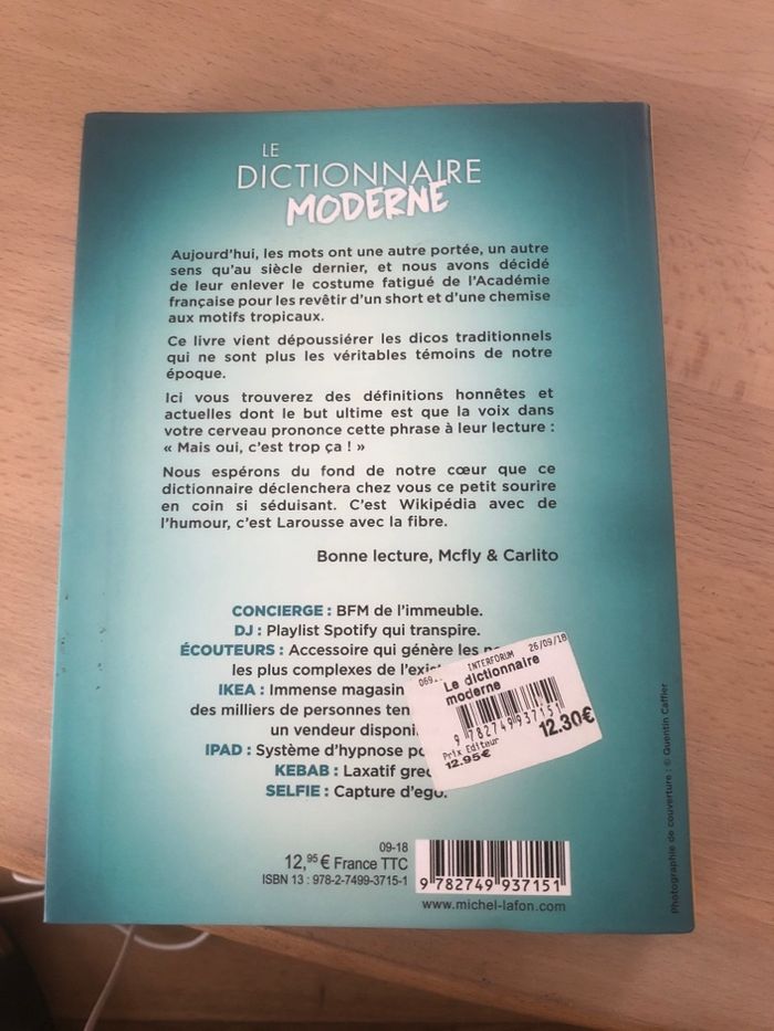 Aujourd'hui, les mots ont une autre portée, un autre sens qu'au siècle dernier, et nous avons décidé de leur enlever le costume fatigué de l'Académie française pour les revêtir d'un short et d'une chemise aux motifs tropicaux. Ce livre vient dépoussiérer les dicos traditionnels qui ne sont plus les véritables témoins de notre époque. Ici vous trouverez des définitions honnêtes et actuelles dont le but ultime est que la voix dans votre cerveau prononce cette phrase à leur lecture : "Mais oui, c'est trop ça ! ". Nous espérons du fond de notre coeur que ce dictionnaire déclenchera chez vous ce petit sourire en coin si séduisant.