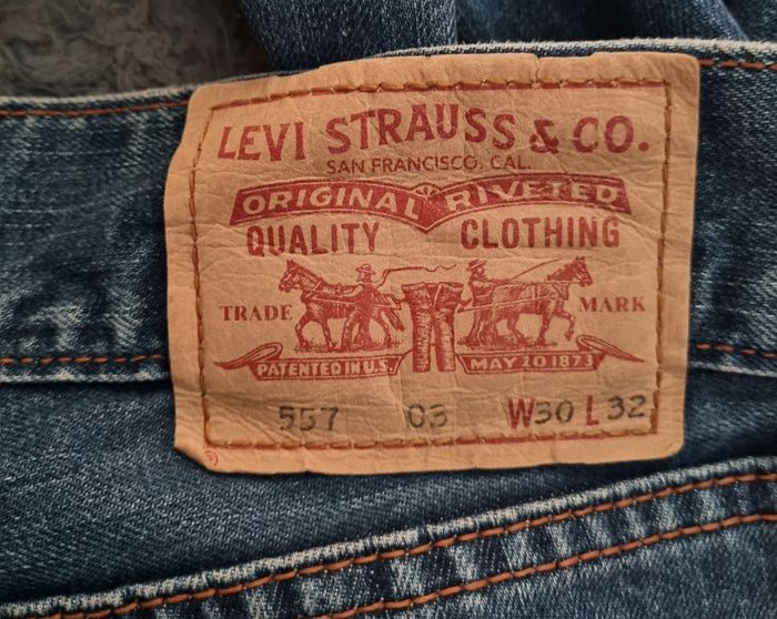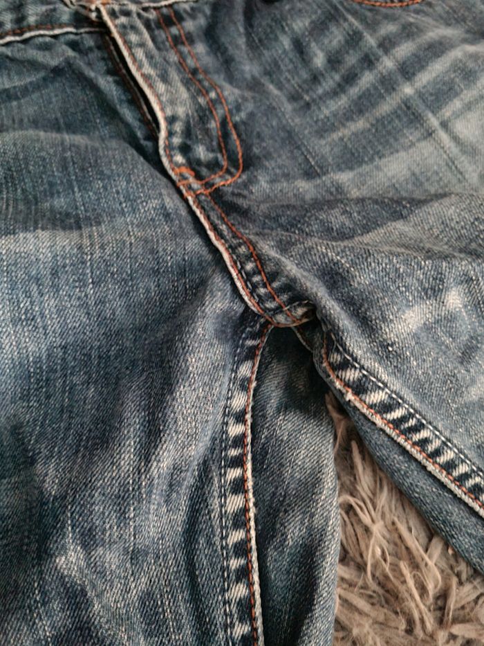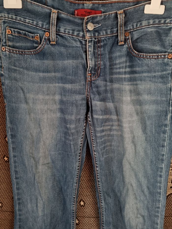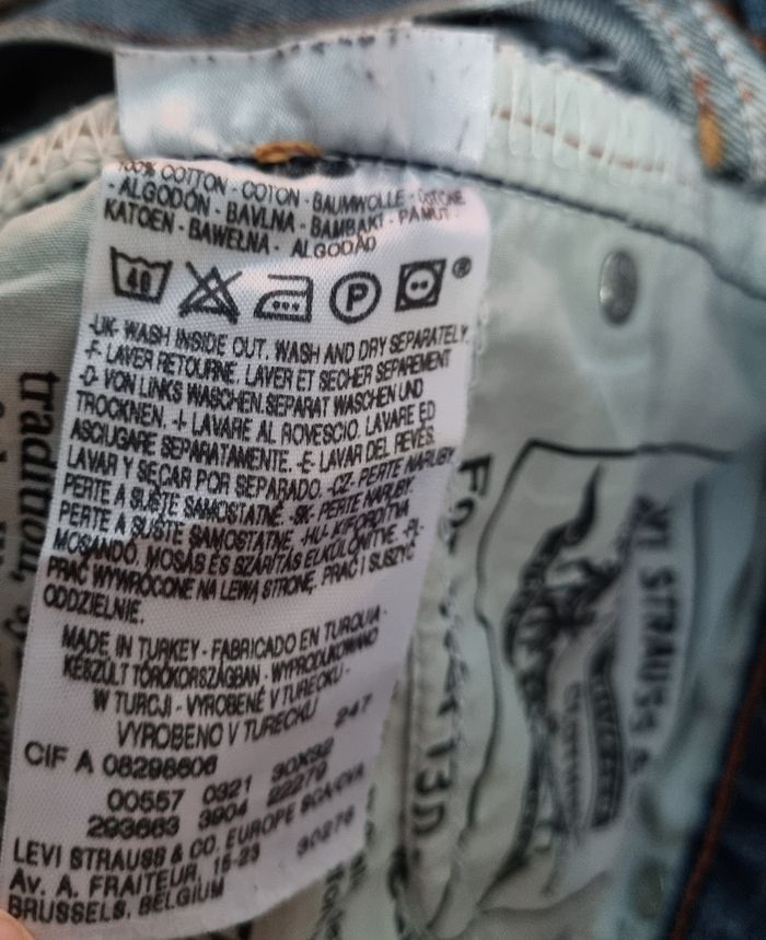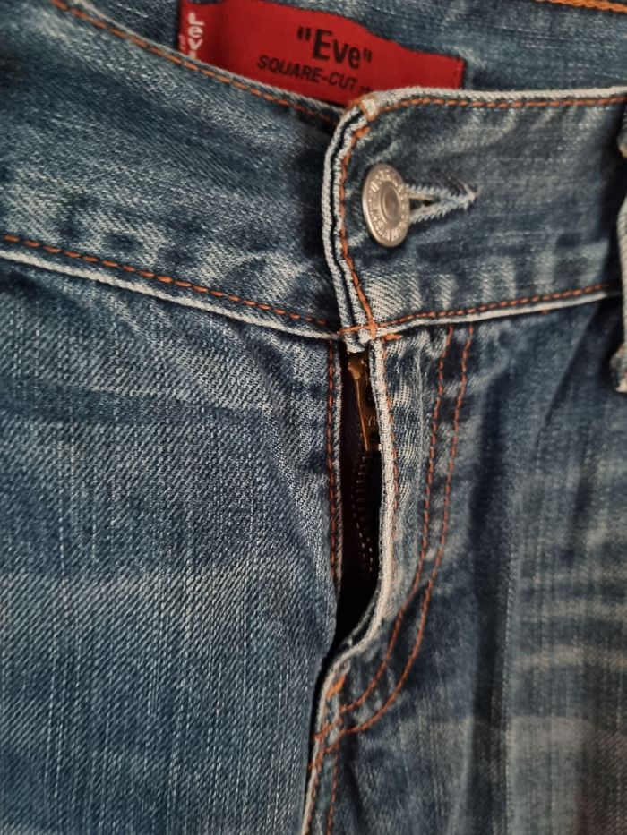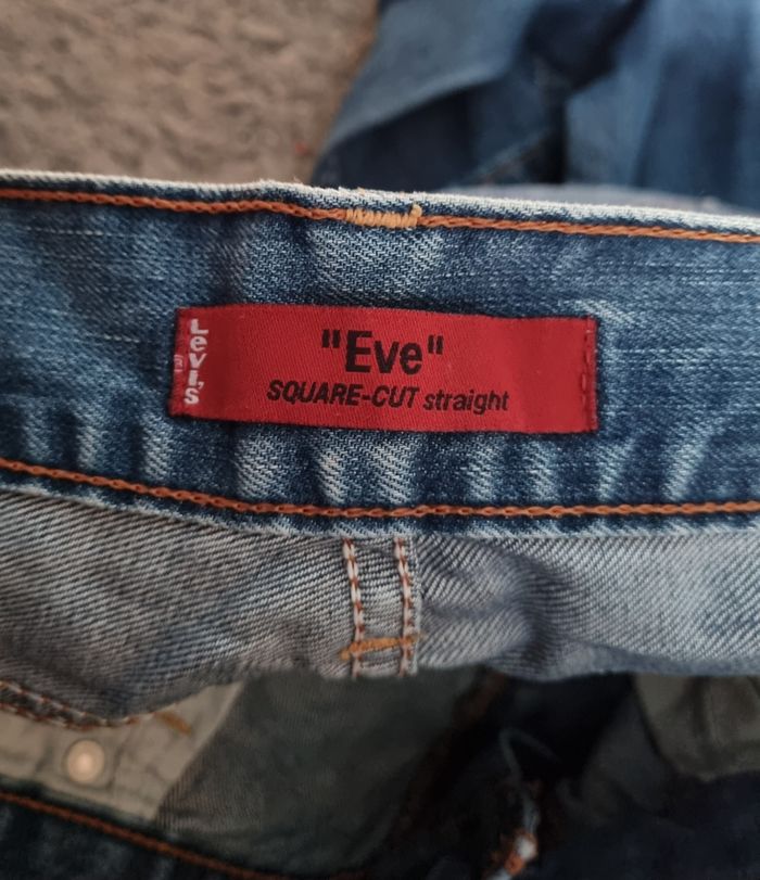 Jean effet délavé Levi's (Eve) Square-Cut Straight W30 L32,fermeture zippée avec bouton, longueur 100cm, largeur de la taille 42cm, largeur cuisse 26cm, largeur cheville 21cm.