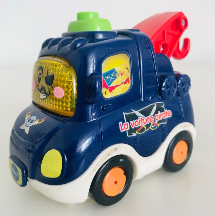 Je vends un véhicule interactif tutut bolide « Pat La voiture Pirate » en très bon état de fonctionnement. Quelques traces d’usure. Lorsqu’on appuie sur le bouton sur le toit le crochet bouge. Musique, sons et lumière. Piles non fournies.