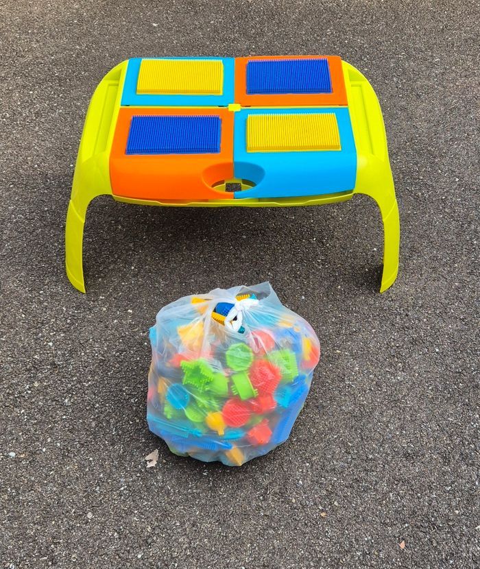 Table de jeu de construction servant de surface de base de jeu 4 espaces de rangement intégrés Nombreuses pièces de blocs de construction Bloko Très bon état