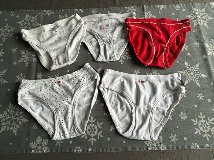 lot de 3 petites culottes fille de la marque Petit Bateau et 2 de la marque « Absorba ».