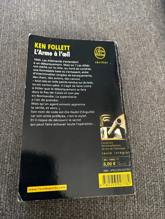 Roman culte de Ken Follett, l’un de ses plus grands succès. Un thriller historique haletant pendant la Seconde Guerre mondiale, mêlant espionnage, suspense et action. 👉 Livre en bon état (petites marques d’usure). Catégorie : Livres / Romans / Thriller / Historique Ken Follett, L’Arme à l’Œil, thriller historique, espionnage, roman Seconde Guerre mondiale, best-seller, roman à suspense, littérature anglaise, roman d’espionnage, livre culte.