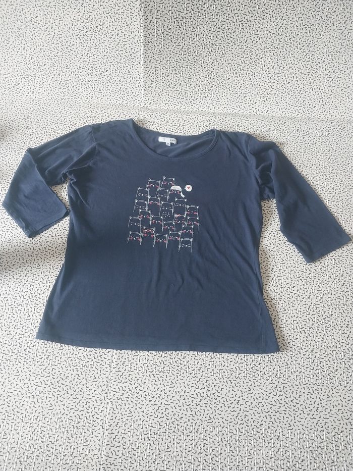 T-shirt bleu marine motif chats – manches 3/4 – taille M - photo numéro 1