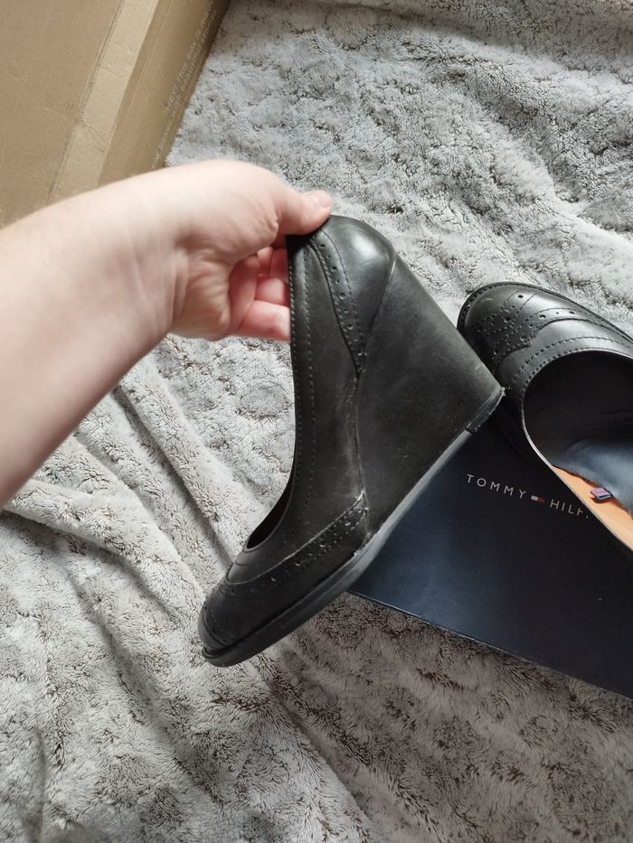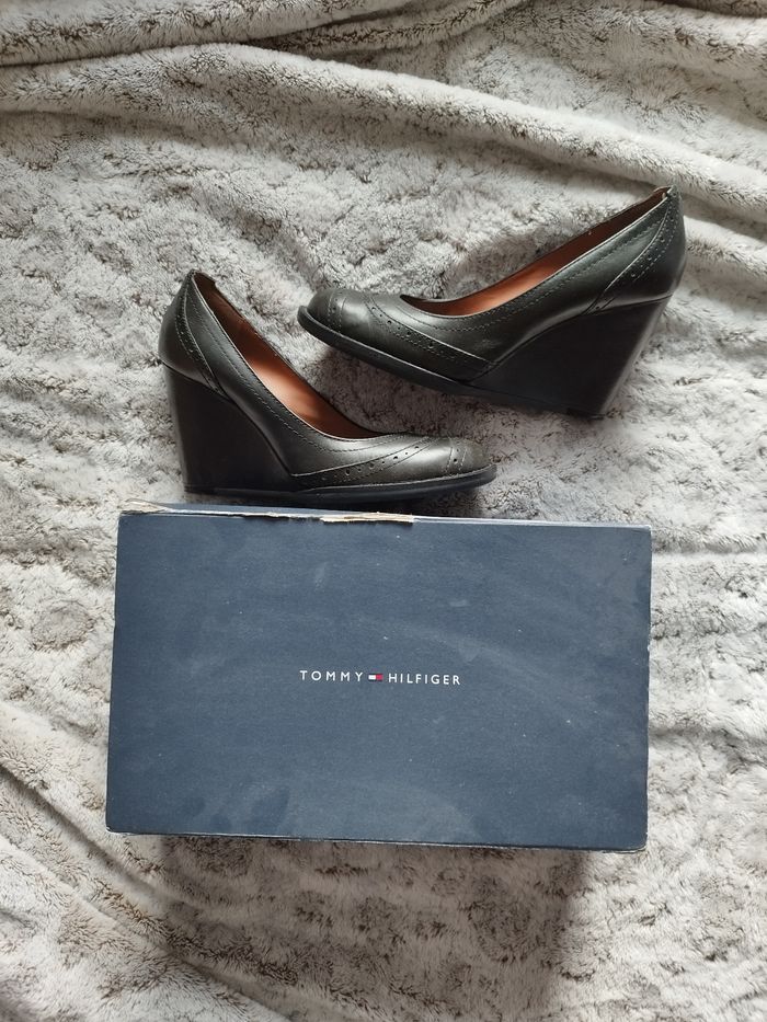 Chaussures à talons compensés Tommy Hilfiger taille 41. En cuir. En très bon état. Elles ont des motifs style derby au bout.