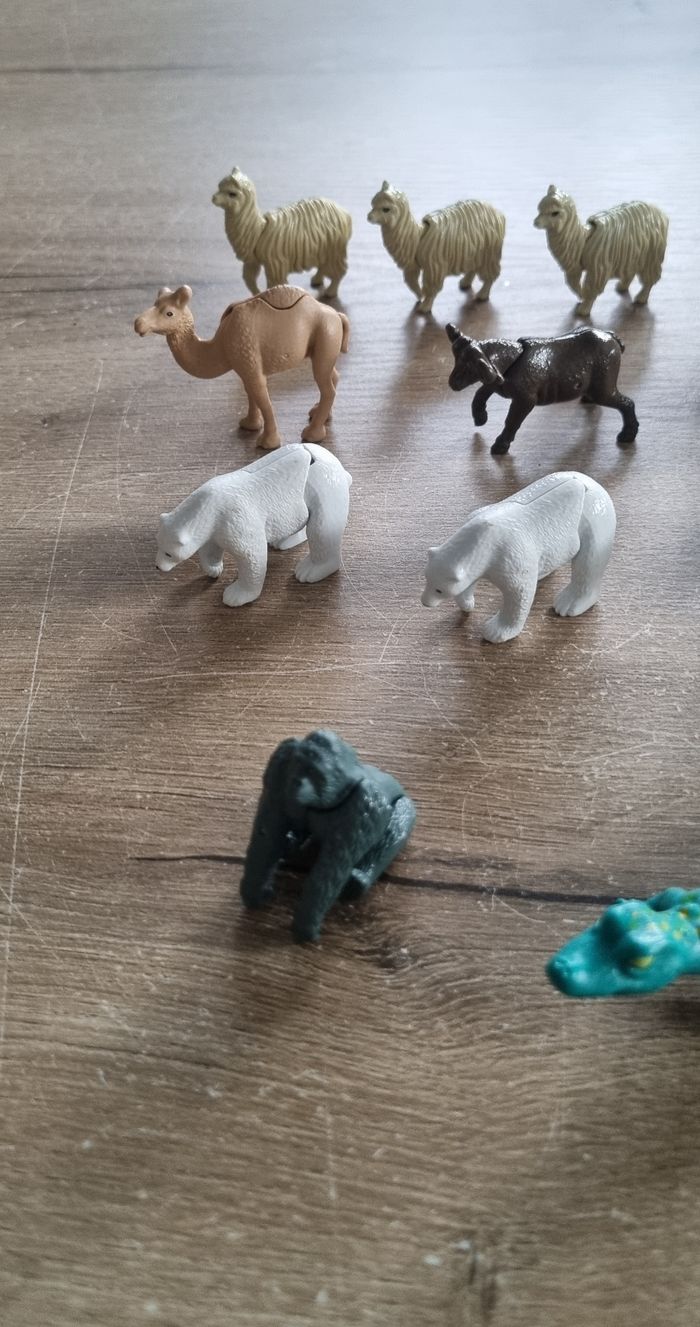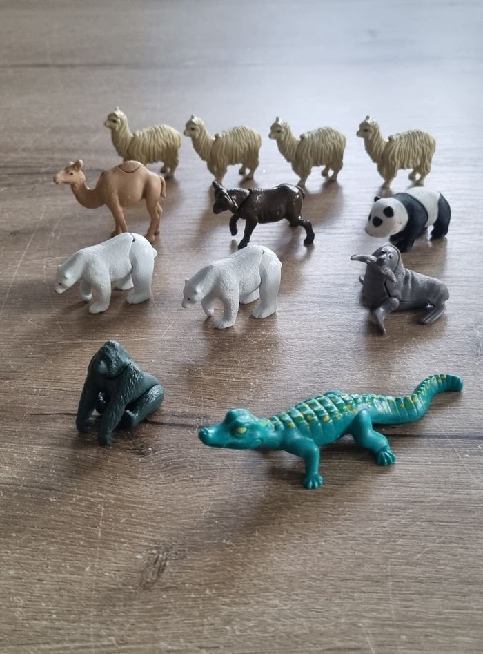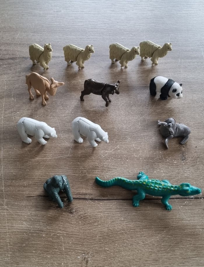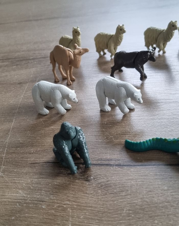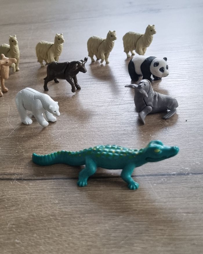 Lot de 12 figurines d'animaux : 4 lamas, 2 ours polaire, 1 lion de mer, 1 dromadaire, 1 taureau, 1 panda, 1 gorille, 1 crocodile Très bon état
