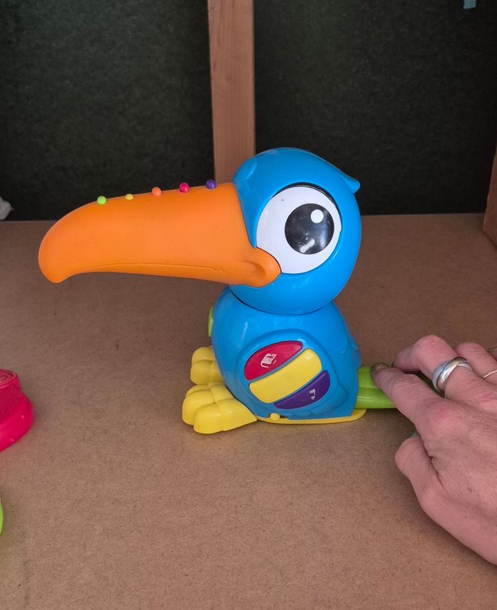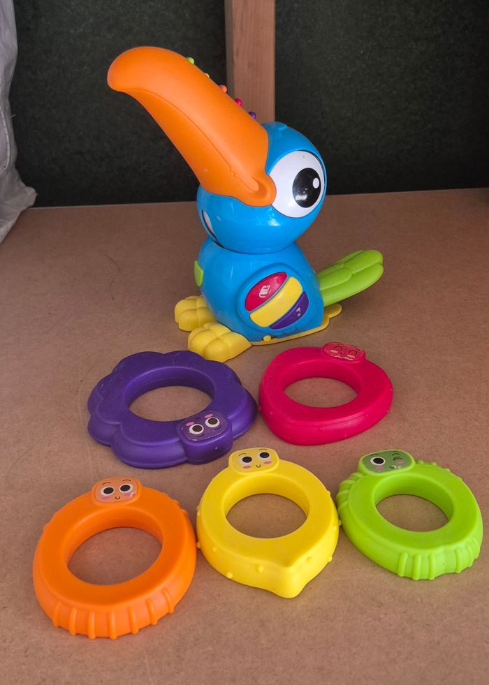 Toucan musical avec anneaux à enfiler sur le bec Bon état