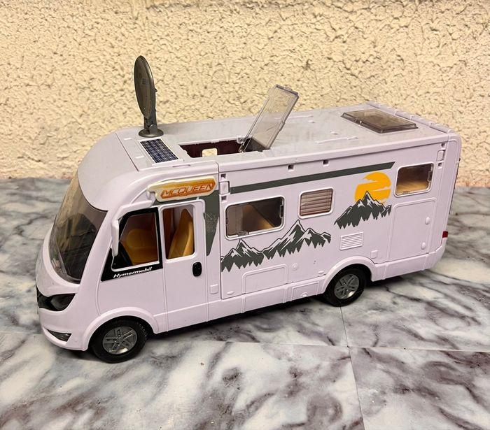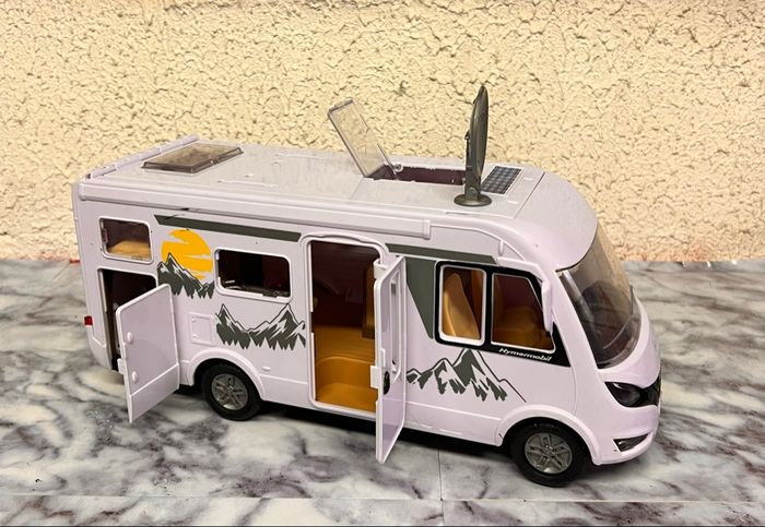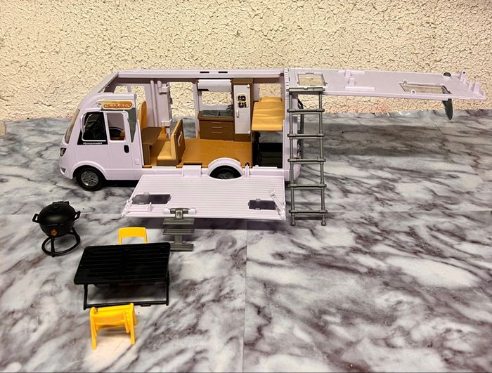 Camping-car Dickie Toys Avec toit ouvrant ainsi que les portes latérales Barbecue éclairant comprenant aussi 1 table et 2 chaises