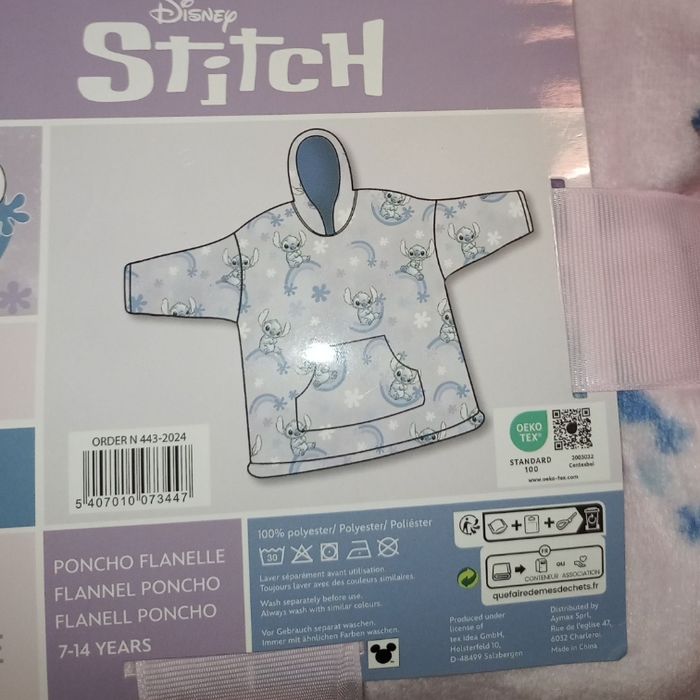 Bonjour Poncho polaire 100% polyester 60 x 75 cm ( 7/14 ans) STITCH DISNEY NEUF encore sous emballage #marie59stitch