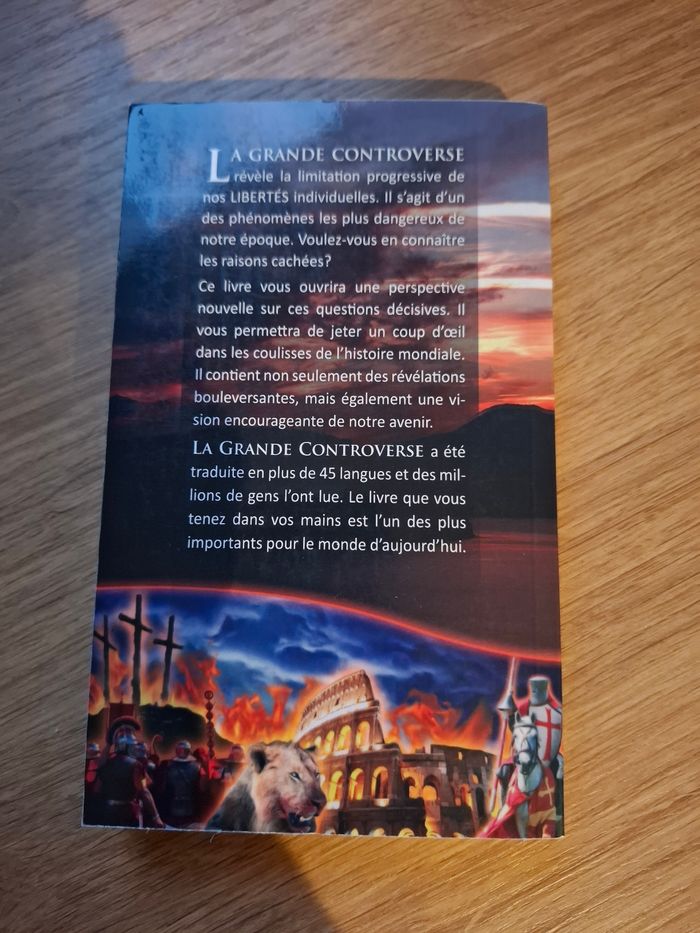Livre La grande controverse de Ellen Gould White en très bon état Ce livre révèle la limitation progressive de nos libertés individuelles. Il s’agit d’un des phénomènes les plus dangereux de notre époque. Voulez-vous en connaître les raisons cachées ? Il vous ouvrira une perspective nouvelle de ces questions décisives. Il vous permettra de jeter un coup d’oeil derrière les coulisses de l’histoire mondiale. Il contient non seulement des révélations bouleversantes, mais également une vision encourageante de notre avenir.. Ce livre a été traduit en plus de 45 langues et des millions de gens l'ont lue..