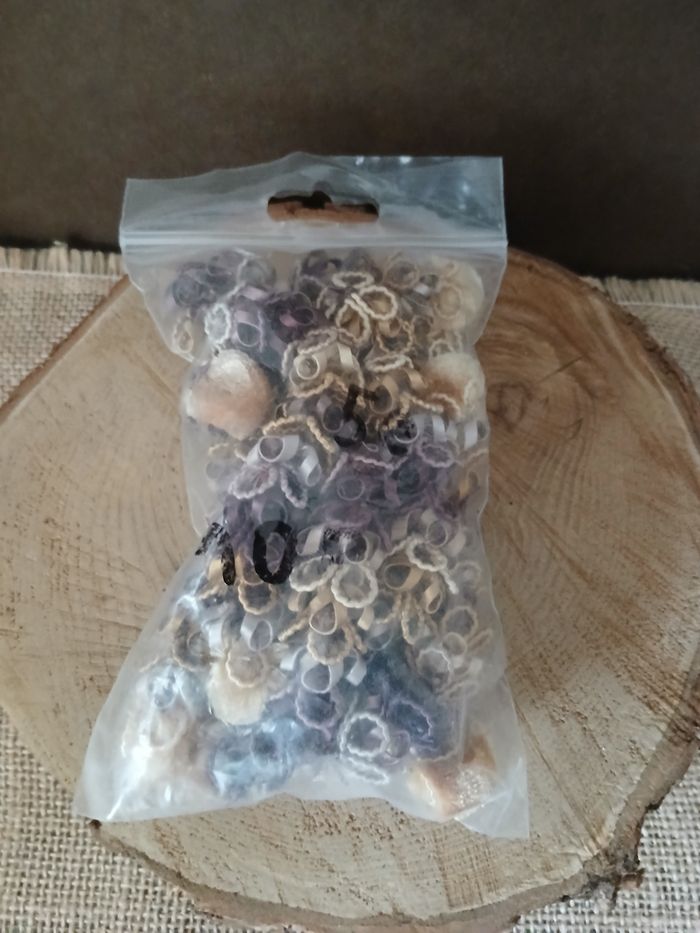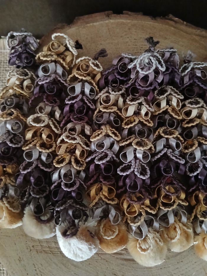 Lot de 10 pompons long guipure violet doré. D'autres breloques perles pompons boutons biais tissu ect de dispo ds mon dressing n'hésitez pas à jeter un coup d'œil ou à me demander.