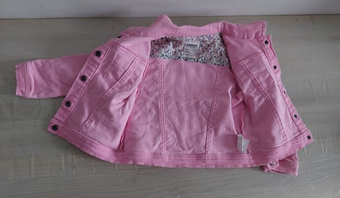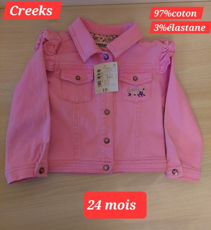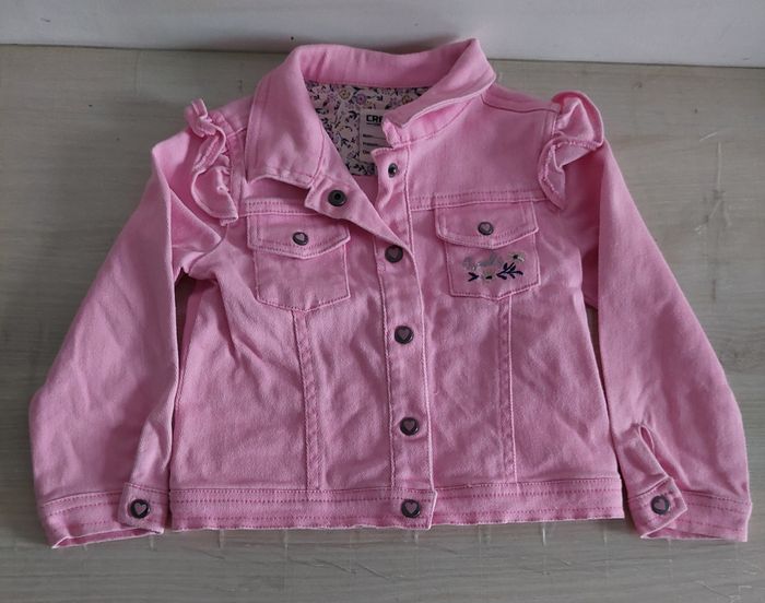 Vends Veste en jean fille 24mois Elle est en très bon état car très peu mise Maison non fumeur Le prix d'achat est indiqué sur la photo 1