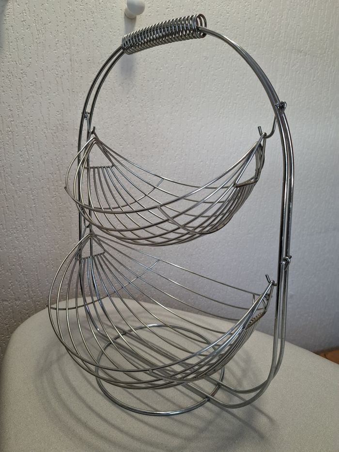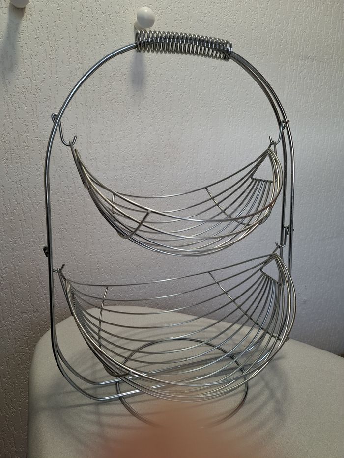 Belle et grande corbeille à fruits 2 niveaux en acier argenté très bon état - photo numéro 4