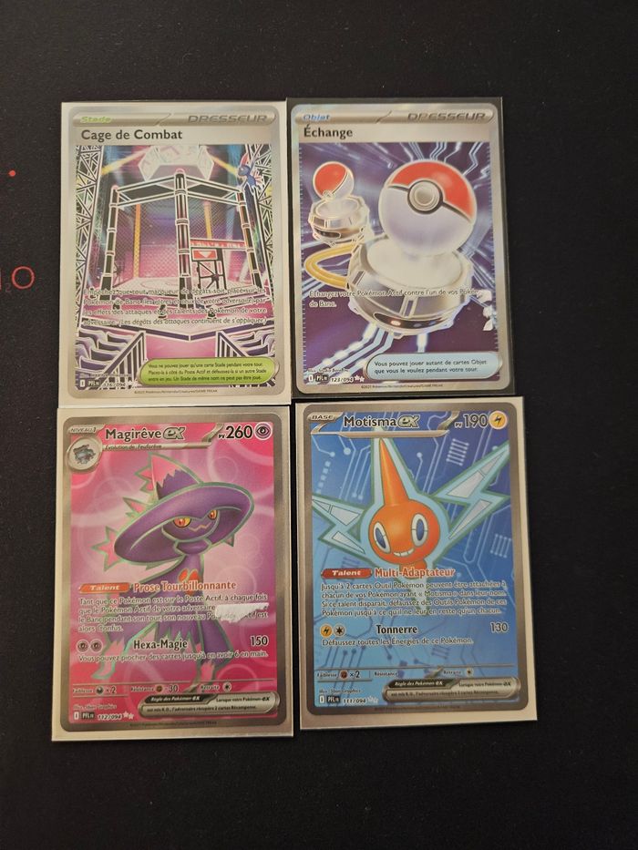 Lot 4 fa flammes fantasmagoriques Échange, cage de combat, magirêve ex, motisma ex Tag: eb07, eb09, eb11, eb12, zenith supreme, escouade, noctali, rayquaza, dracaufeu, pikachu, celebrations, ev4.5, ev8, ev8.5, ev 3.5, 151, evolution céleste, evolution prismatique, étincelle déferlante, surging sparks, ev09, aventure ensemble, ev10, destinées rivaux, rivalités destinées, ev10.5 flamme blanche, foudre noire, mega evolution me1, flammes phantasmagoriques, me2