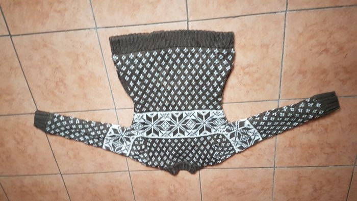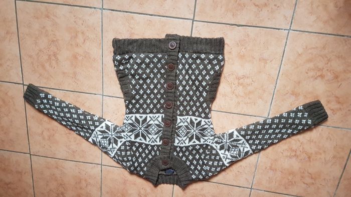 Gros gilet polaire femme Plus étiquette correspond au 38-40 Couleur marron motifs blanc cassé Manches longues Col rond 2 poches Fermeture à boutons Très chaud Marque Charlise