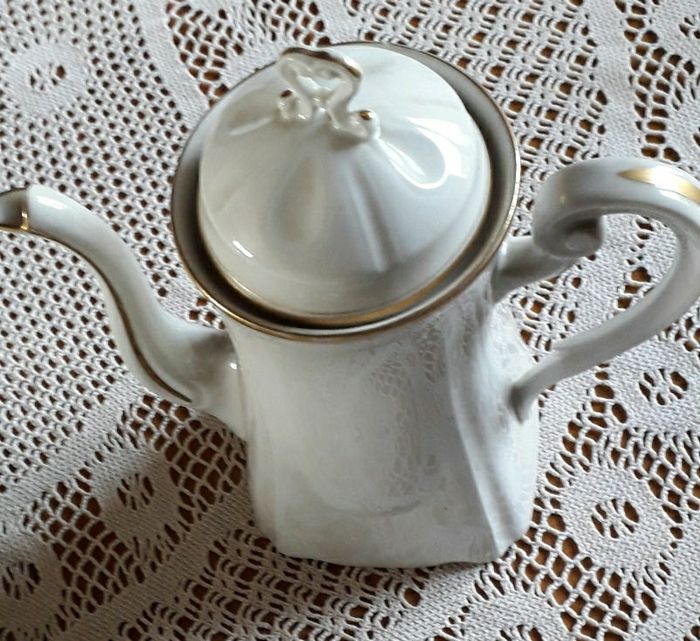 Service à café blanc liseré doré 1 cafetière 1 pot à lait 6 tasses et soucoupes