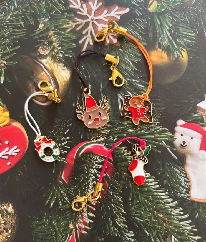 Lot de 4 breloques de Noël en métal Je vends ce lot de quatre breloques, adorables petites attaches, représentant des petits de ravissants motifs de Noël Ajoutez une touche festive à vos cadeaux ou à votre décor avec ce lot de quatre adorables breloques ! Détails : - Mesures totales : « Environ » de 6 à 7 cm (attaches comprises) - Taille des breloques: Environ 1,5cm à 2cm - Matériau : Métal de couleur doré, breloques émaillées, finement réalisées et de bonne qualité - Design: botte de Noël, couronne, renne de Noël, et bonhomme, en pain d'épices, parfaits pour égayer vos décorations de Noel ! Présentées dans une petite poche verte en organza, ces petites attaches breloques sont neuves. Remise en main propre possible à Chartres, secteur cathédrale. Envoi rapide et soigné