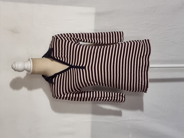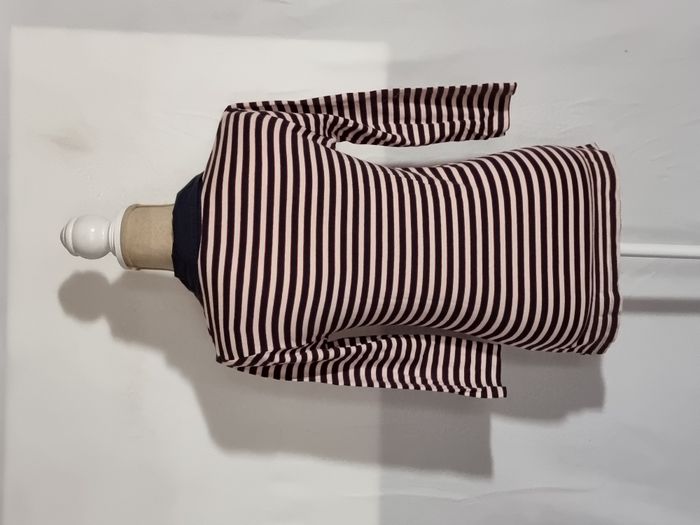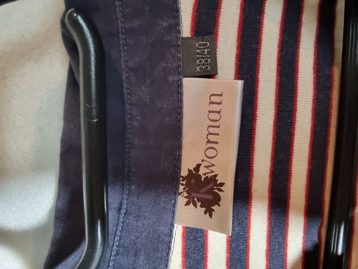 T-shirt manches 3/4 femme K Woman rayé marine rouge et beige taille 38/40. En très bon état. Envoi rapide et soigné. Négociable.