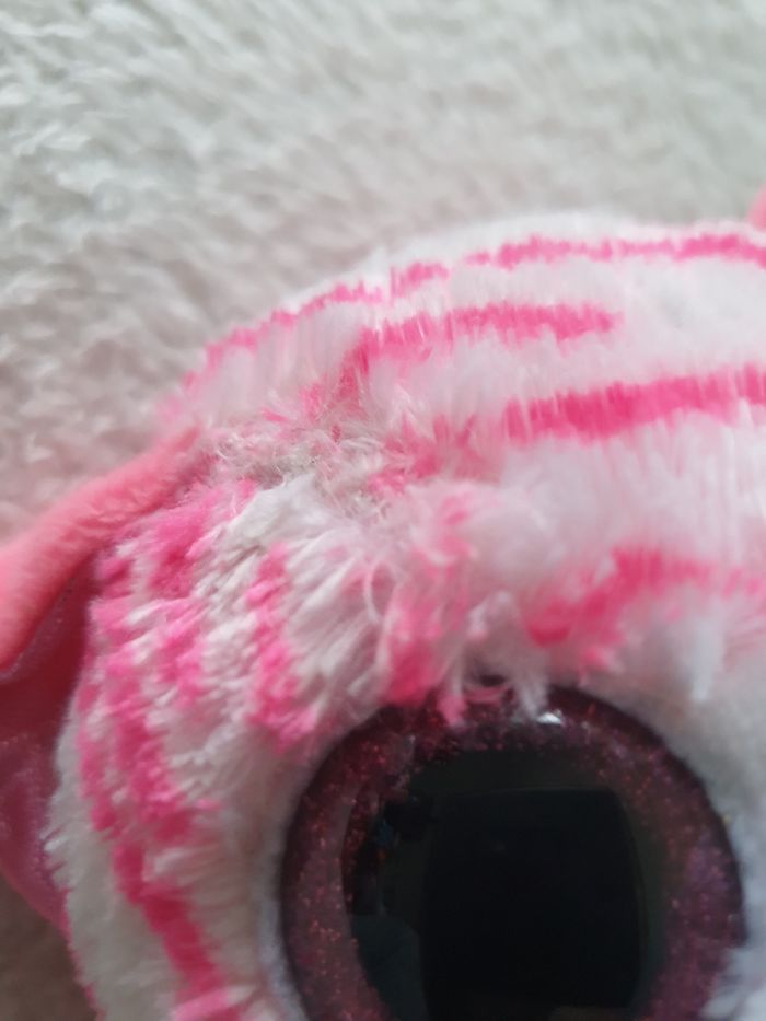 Peluche Beanie Boos Ty Asia Elle mesure environ 15cm. Elle a été recousue au dessus de l'œil (voir photo)
